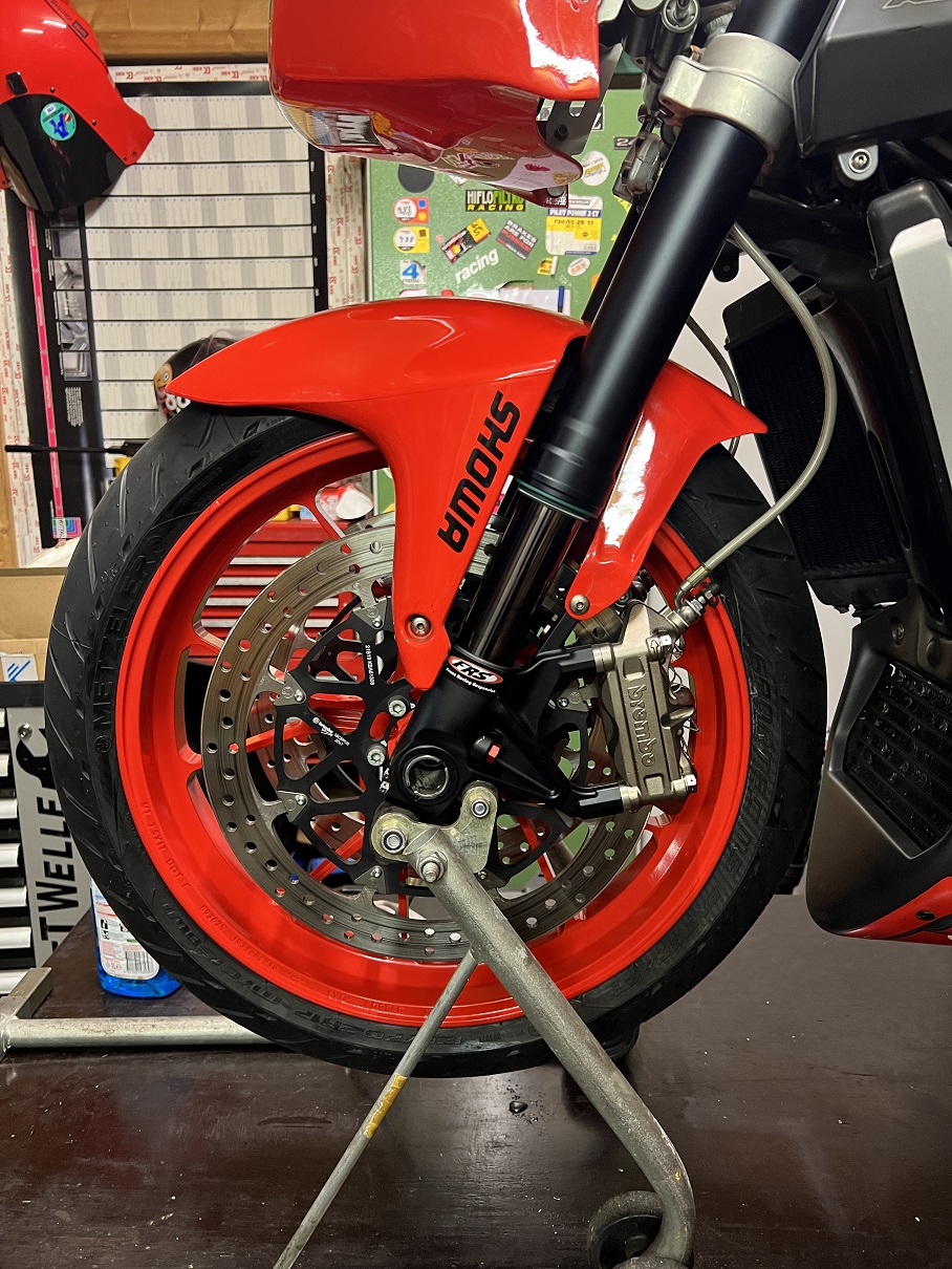 Sachs Gabel der RSV4 komplett überholt und umgebaut (Shims, Kolben, Feder, DLC, Elox etc) und nein die hat nicht FRS umgebaut. Die haben nur die Rohre DLC beschichtet