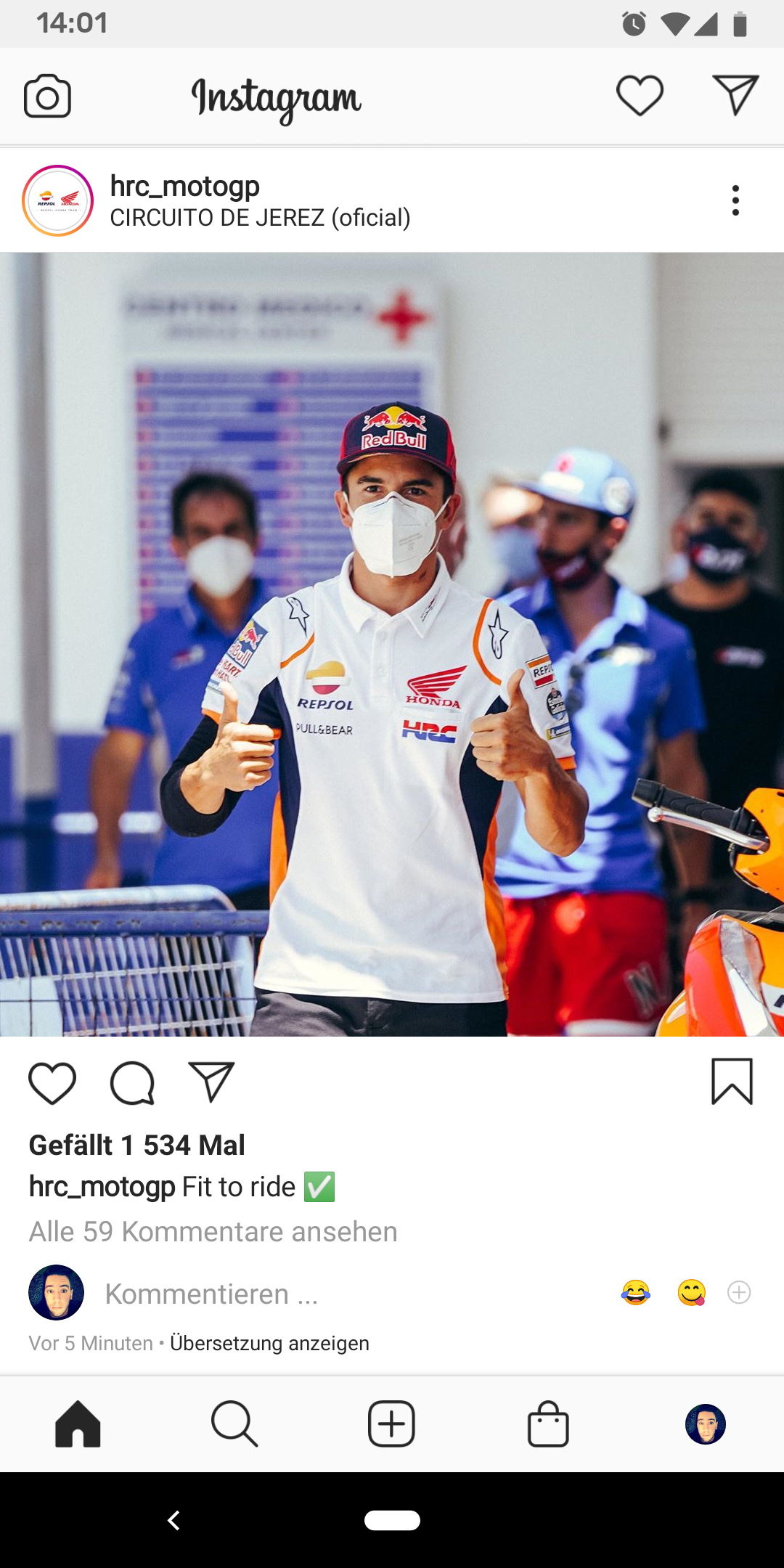 Ich bin jetzt ein Nurmi gegen einen Marquez, aber ich bin auch schon öfters sehr sehr früh wieder aufs Bike gestiegen.Taurus hat geschrieben:Auch ein Marquez ist nicht unzerstörbar und wird irgendwann an seine Grenzen kommen.steirair hat geschrieben:Der Bursche ist halt so trainiert, dem traue ich alles zu.Taurus hat geschrieben:Zumal es der rechte Arms ist. Gefühl für Gas/Bremse nach einer OP --- Fragezeichen! Verständlich, dass er es unbedingt versuchen will. Wird aber vermutlich nix werden.