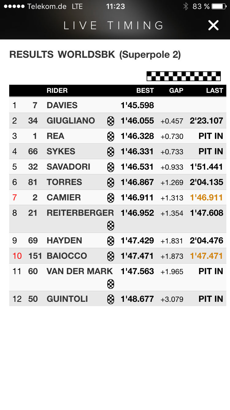 des Samstag-SBK-Rennens