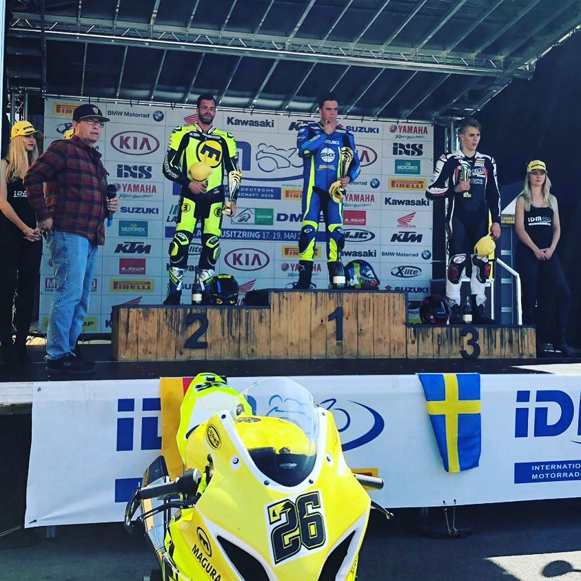 auch die 2 Rennen machen es lohnenswert so weit anzureisen ! Das Fahrerfeld mit 18 Mann etwas schwach besetzt aber ich bin überzeugt da hätten einige ihren Spaß! Ich war zu Beginn etwas skeptisch wegen dem Bike . Denn man hört ja viel ... im Endeffekt muss ich sagen auch wenn wir noch nicht da sind wo wir hin wollen kriegen wir das Bike Stück für Stück unter Kontrolle. Der Fahrspass ist Wahnsinn! Selten ein Bike so gut und detailliert unter mir gespürt . Schlussendlich bin ich im umkehrschluss eher begeistert von der Suzi