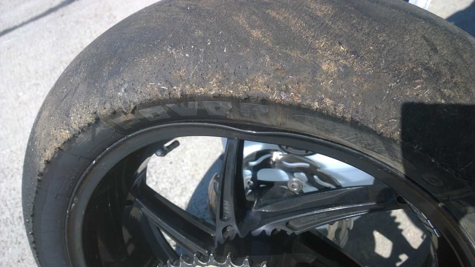 gestürzt bin ich in Kurve 14. Eigentlich schön klassisch über das Vorderrad. Das ging auch so lang gut bis sich die Fußraste oder der Bremshebel in diesen Rasengittersteinen (oder wie die auch immer heißen) verfangen hat.
