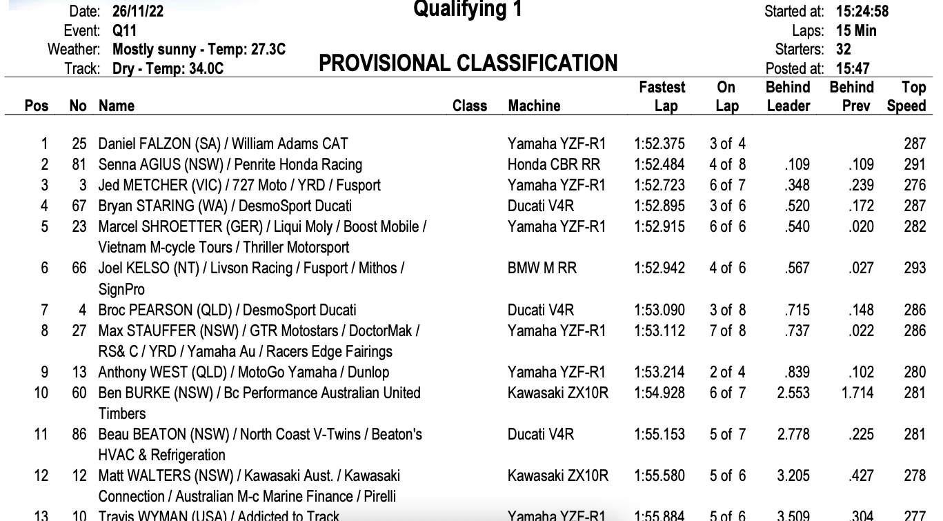 So, Qualiyfingtime in Down Under, die ersten drei des Q1 kommen in das Q2, und Celli war nicht dabei: