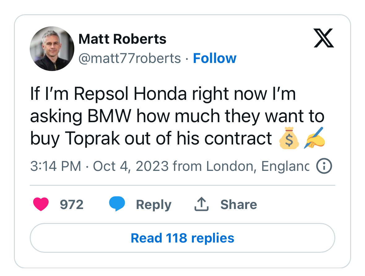 Toprak bei Hrc. Das wäre schon was besonderes. Sein Fahrstil ist schon beeindruckend.