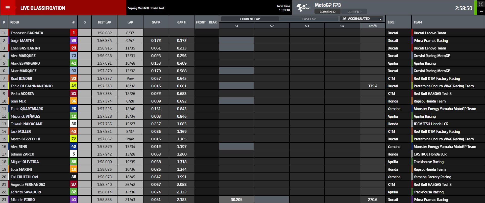 Rein von den Herstellern sieht es m.M. nach gewohnt aus. Ducati eher vorn, Aprilia und KTM gestreut, Honda und Yamaha eher hinten.