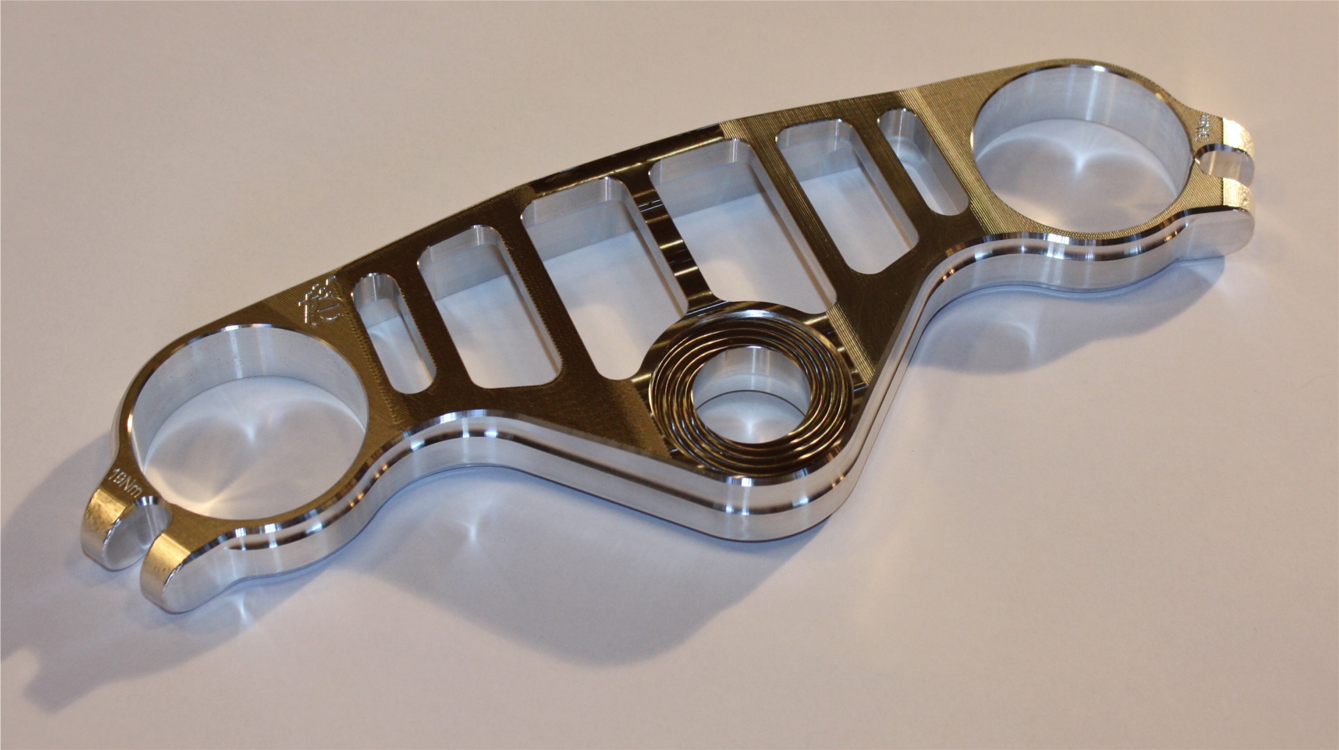 Die Tage habe ich Gabelbrücken für die S1000RR in verschiedenen Steifigkeiten gefräst, die gehen jetzt an Mattias (3._#34) damit er denen auf den zahn fühlt und ich neuen Input für meine Simulationen bekomme.