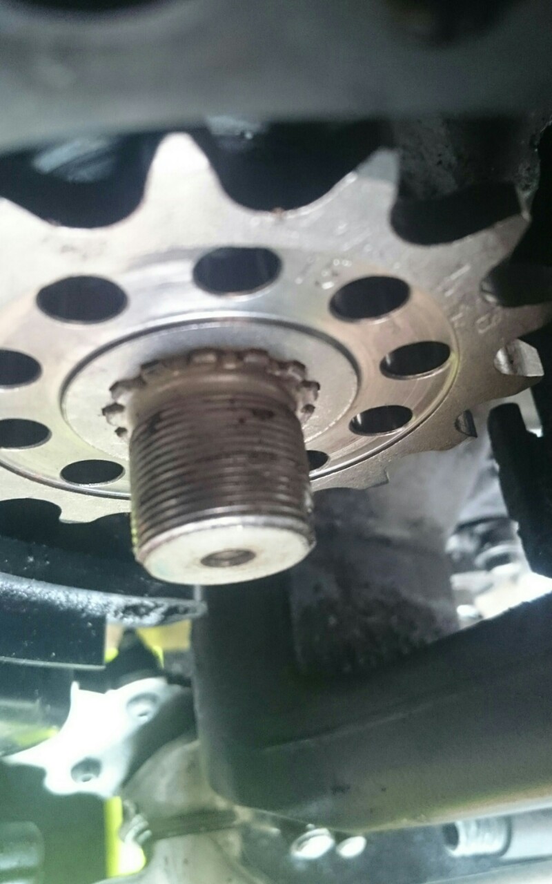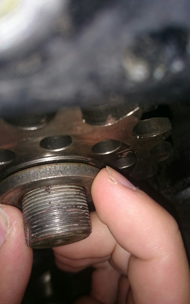 Das originale Ritzel ist breiter als die Zähne, sodass die Unterlegscheibe gegens Ritzel drückt. Ritzel breiter als der Zahnkranz der Welle.