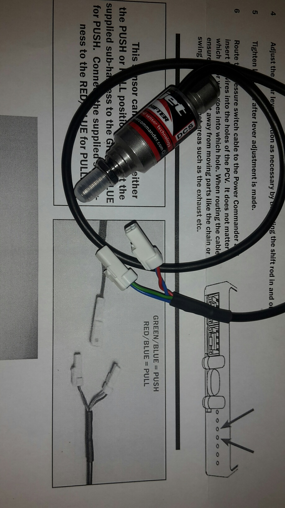 Der Sensor hat zwei Ausgänge. Und je nach dem, in welche Richtung ausgelöst wird, gibt's ein Signal am jeweiligen Ausgang. Micronsystems empfiehlt den Sensor sogar für den Translogic Blipper. Blöd dabei ist aber, dass der Dynojet Sensor nicht per Plug&Play an den Translogickabelbaum passt, somit muss man hier leider etwas basteln, was jetzt nicht unbedingt der Beschreibung entspricht. Passen würde das nur mit dem Translogic Sensor, den man nur auf Nachfrage bei Micronsystems bekommt.