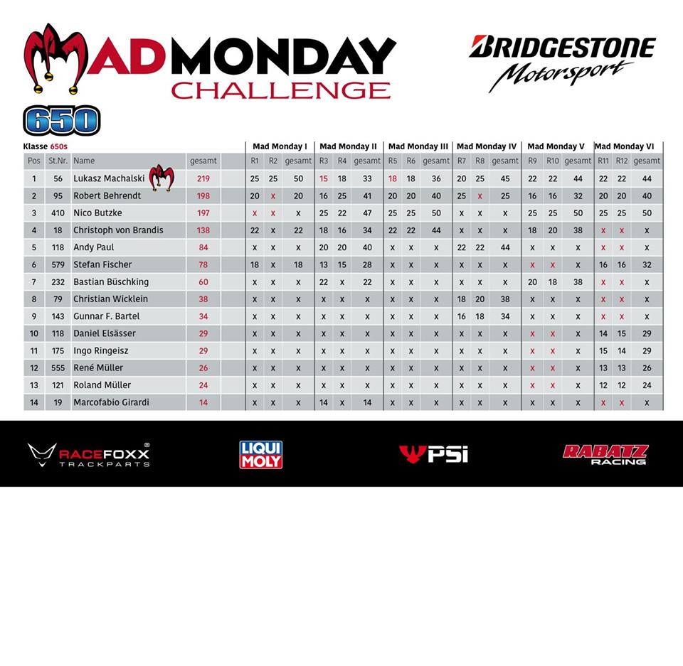 Die Termine sind schon bei MotoMonster online. Es wird wieder 6 Veranstaltungen mit jeweils 2 Rennen geben und die Klassen sind nach wie vor Fun (SuMo, Naked, Classic, und neu: Einsteiger), 650s und Open.