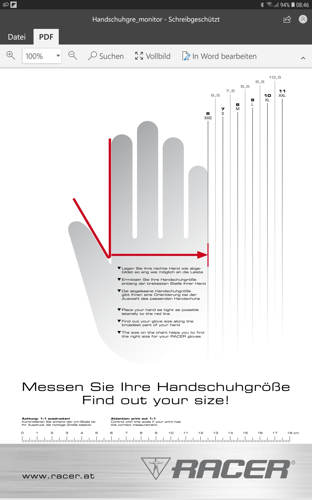 nach der Größenbestimmung von Racer hätte L für mich eigentlich gut passen müssen. Die Handfläche ist am Rand von L. Handfläche war auch gut aber die Finger ....... ne zu kurz und auch eng. Habe jetzt mal XL (den Sicuro) bestellt. Das Modell scheint auch keine Protektoren an den Fingerkuppen zu haben. Sieht so auf dem Bild aus .............