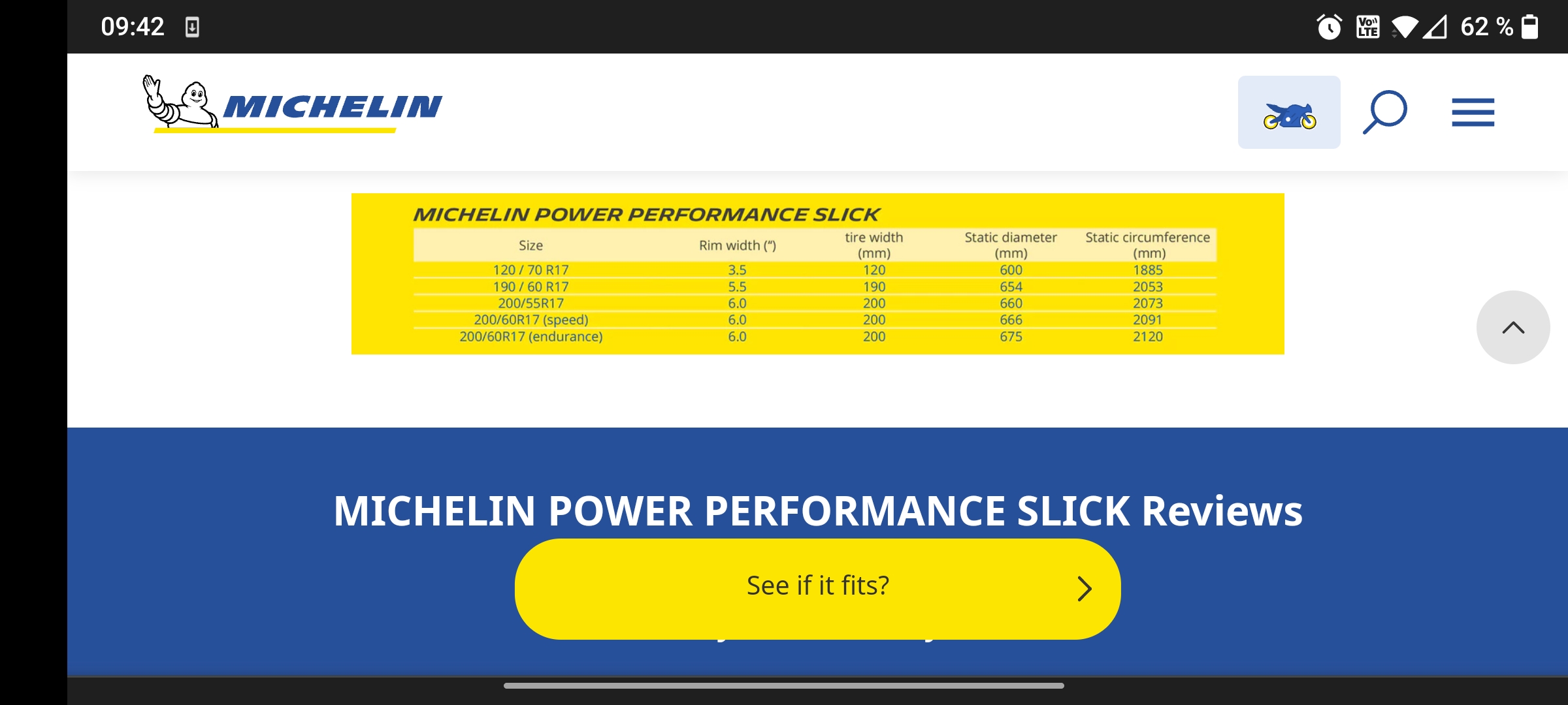 Ich bin auf der Suche ñach einem Reifenumfang. Die von Michelin habe ich gefunden.