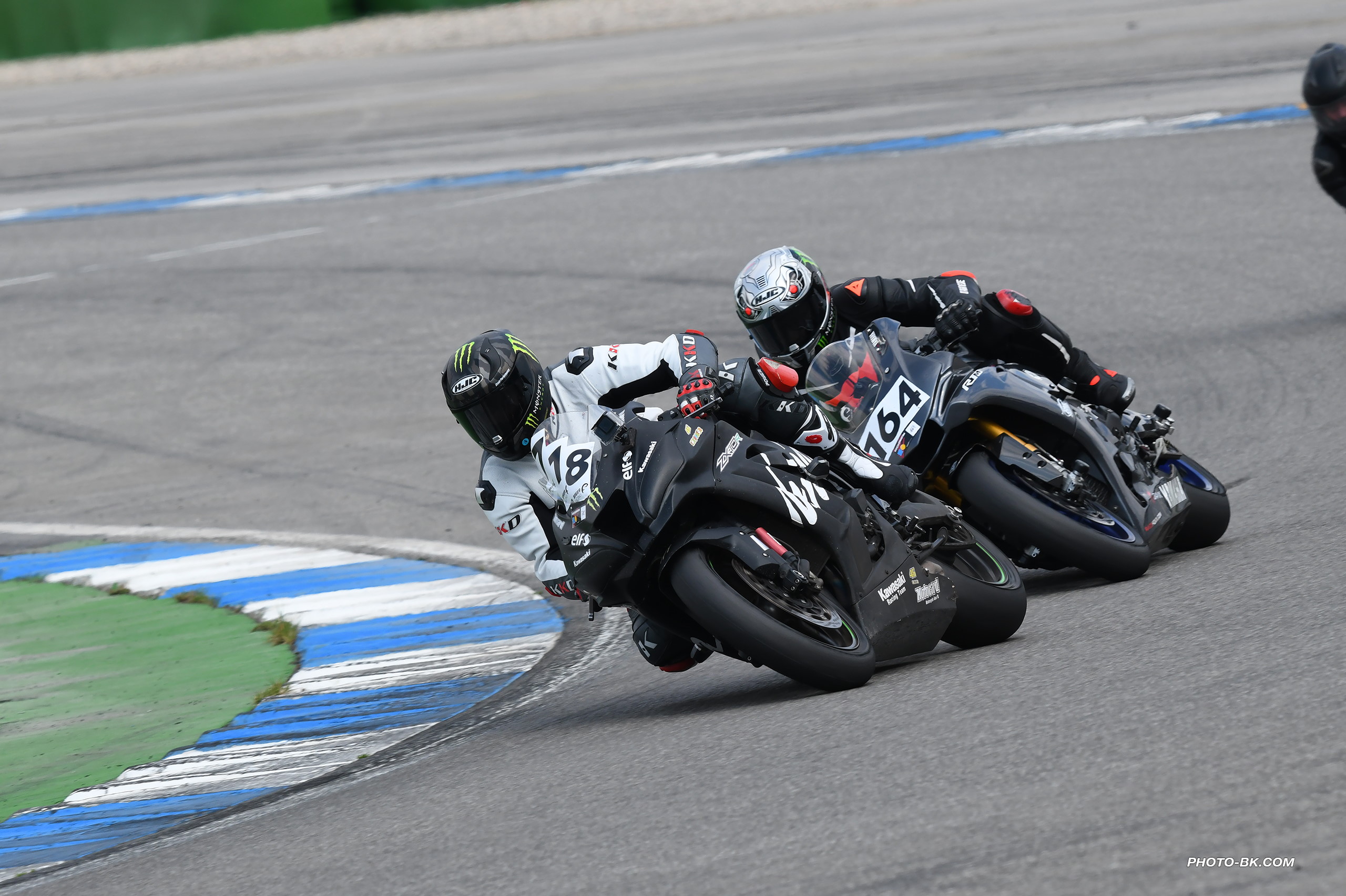 Der Vierte, der mich auf Start / Ziel überholte, war eine Yamaha R1M. Auf Start / Ziel wohlgemerkt. Nicht mit mir. Ich zog nochmal härter am Kabel. Soll der Motor doch hochgehen, mir egal. Meine Bremse ist stärker. Also, wenn an der 10er serienmässig was richtig gut ist, dann die Bremse. Im Verlauf des Rennens verlor ich immer mal Zeit auf ihn, konnte mich aber jedes Mal gut ranfahren. In der vorletzten Runde versuchte ich dann mein Glück und zog hier und da vorbei. Kurz vor Kurve 2 in Runde 6 war es dann soweit. Ich hatte mich wieder rangearbeitet, zog raus und war vorbei.