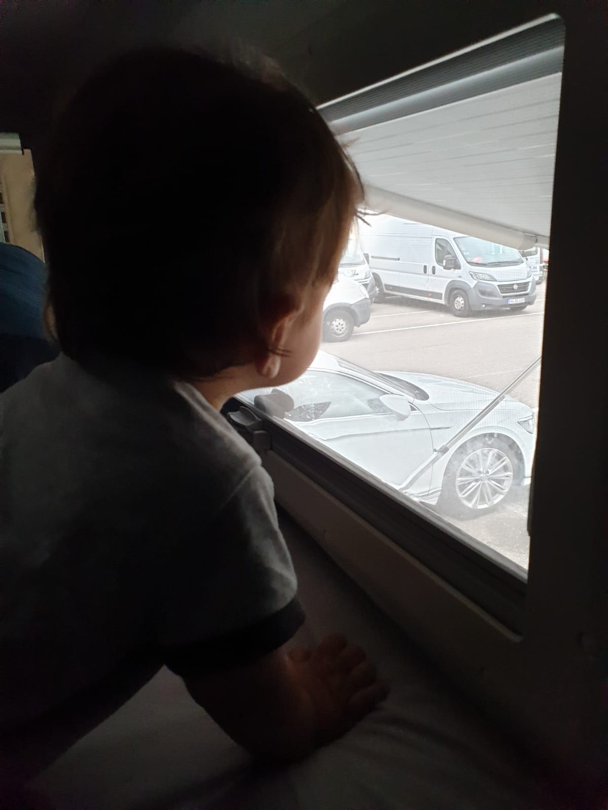 Jonas schlummerte friedlich in seinem Kindersitz. Wir waren gerade dabei Lebensmittel und diverses Gepäck vom Fahrzeug in den Wohnbereich des Sportcaravans umzuschichten, da hören wir ein verschlafenes “Daaaaa”. Jonas, ist sobald er wach wird, in der Regel sofort startbereit. Man könnten ja was verpassen. Aber warum war er wach? Achja, das Auto schunkelt nicht mehr. Er flitzte also noch etwas herum. Begeistert versuchte er die Stufen zum Caravan zu erklimmen, war aber noch etwas zu kurz. Dann muss man halt herumliegende Steine auf den Stufen abgelegen oder Papa durfte ihn rein und wieder rausheben. Achne, auf Papas Arm ist es am coolsten. Getragen werden ist toll