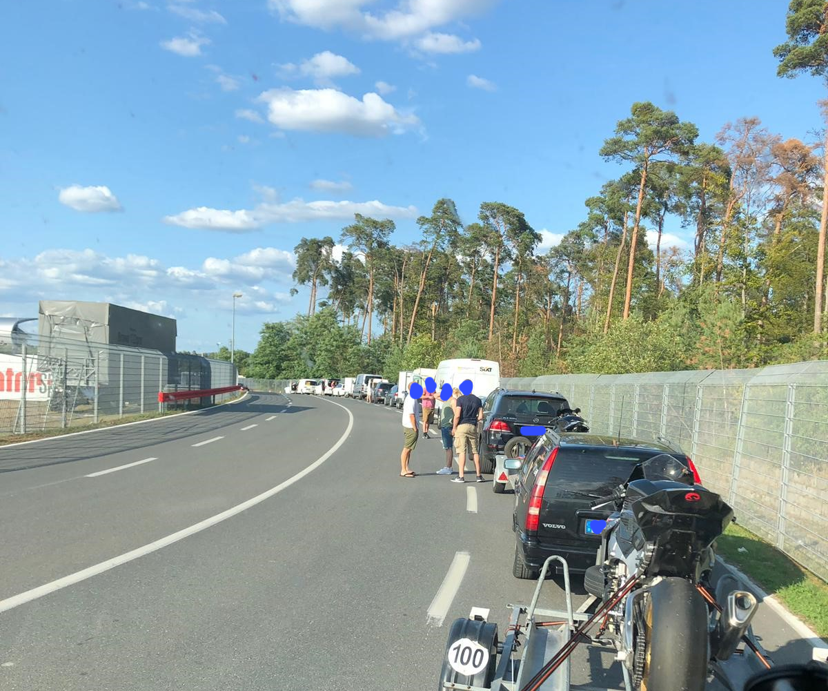Glücklicherweise waren nur 160 Kilometer Wegstrecke zu bewältigen, was im Verhältnis zu den knapp 600 Kilometern nach Brünn eine kleine Fahrt um die Ecke ist. Mit Flox hielten wir permanenten WhatsApp Kontakt. So waren wir bereits seit dem späten Nachmittag darüber im Bilde wie die Schlange vor dem Fahrerlager aussah.