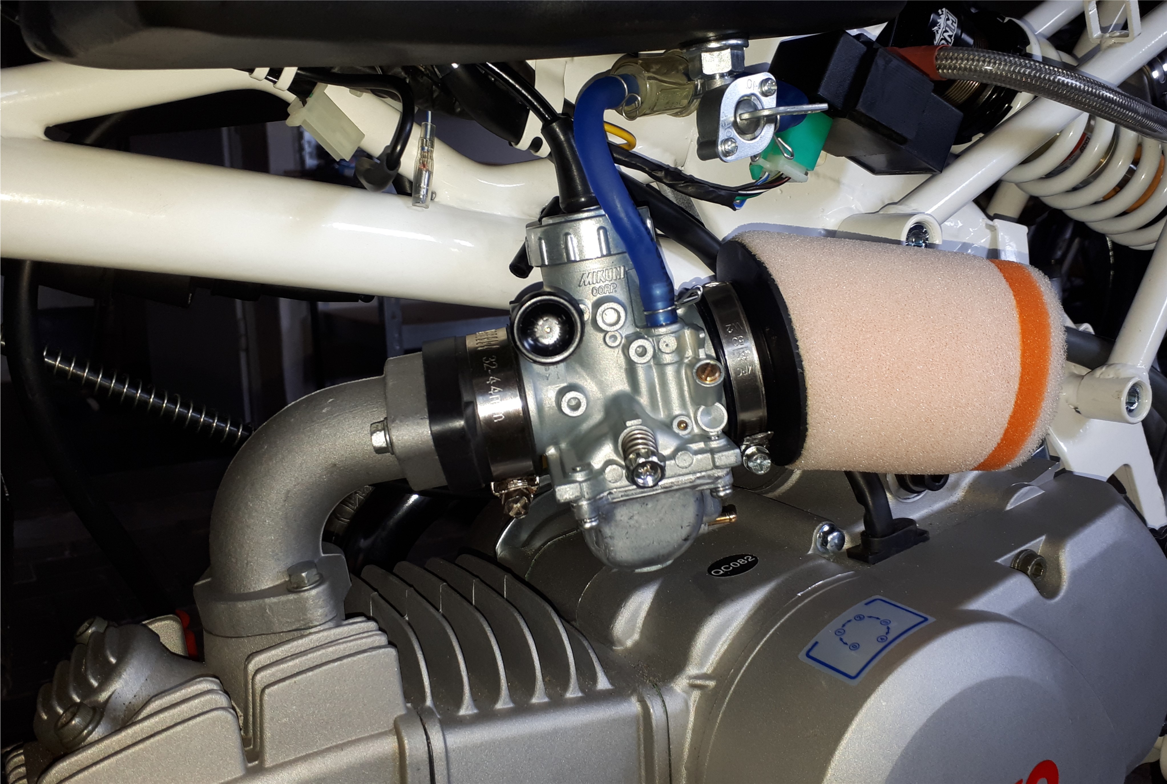 Der ist auch gleich von Wolfgang richtig bedüst und vorabgestimmt worden für meinen Luftfilter und Endschalldämpfer, sodass man den Plug'n'play anbauen kann.