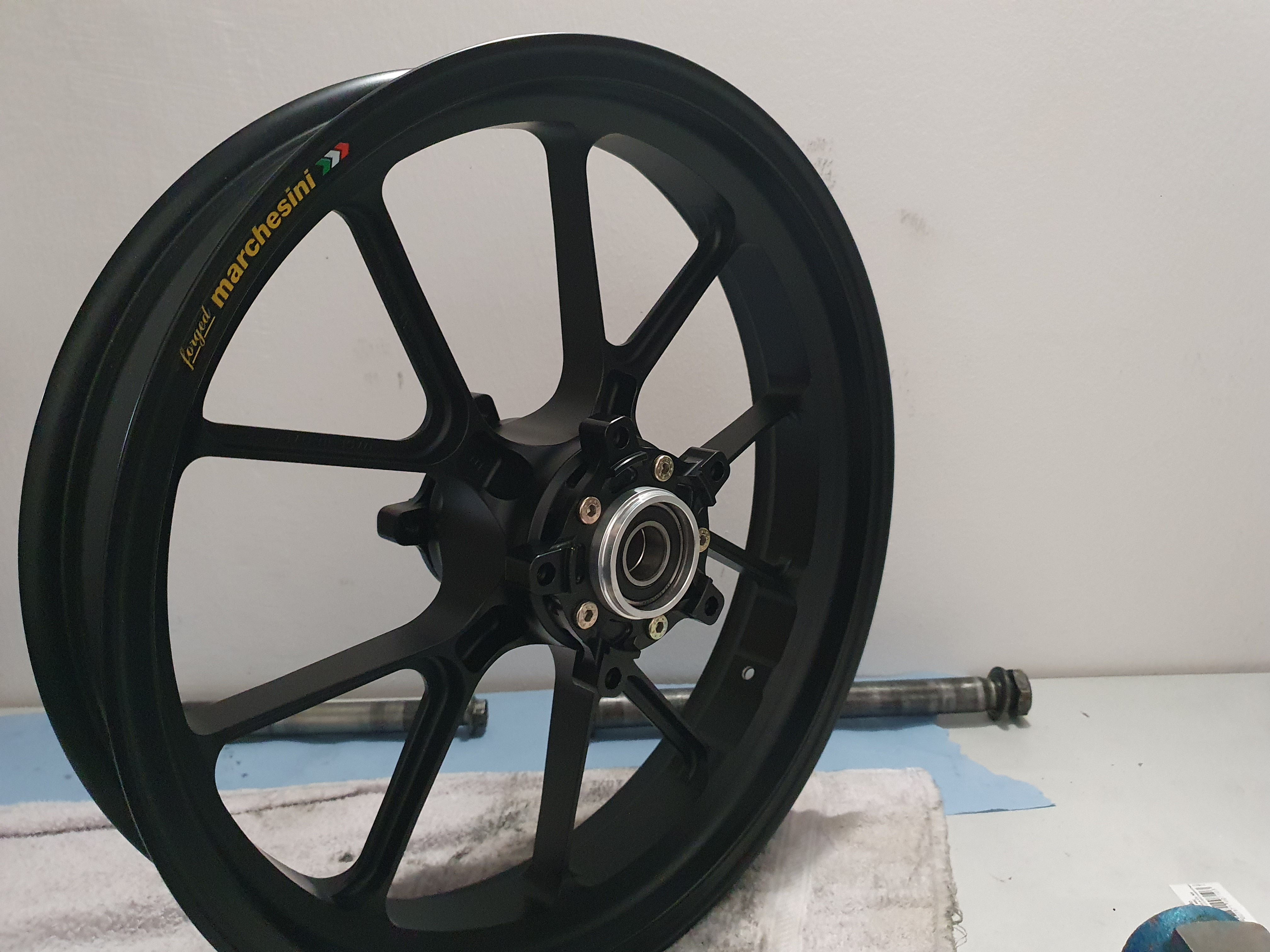 Original ist es ja so vorgesehen, dass die Vorderradfelge eine Hülse in Fahrtrichtung rechts hat, die "eingesetzt" wird und beweglich ist. Bei den Marchesini Felgen hingegen sind fest verbaute Alu Distanzen, die deutlich breiter vom Durchmesser sind, als die originale Hülse. Kann/Soll man die Felgen so einbauen, oder gehören dort noch Distanzstücke o.ä. dazwischen?