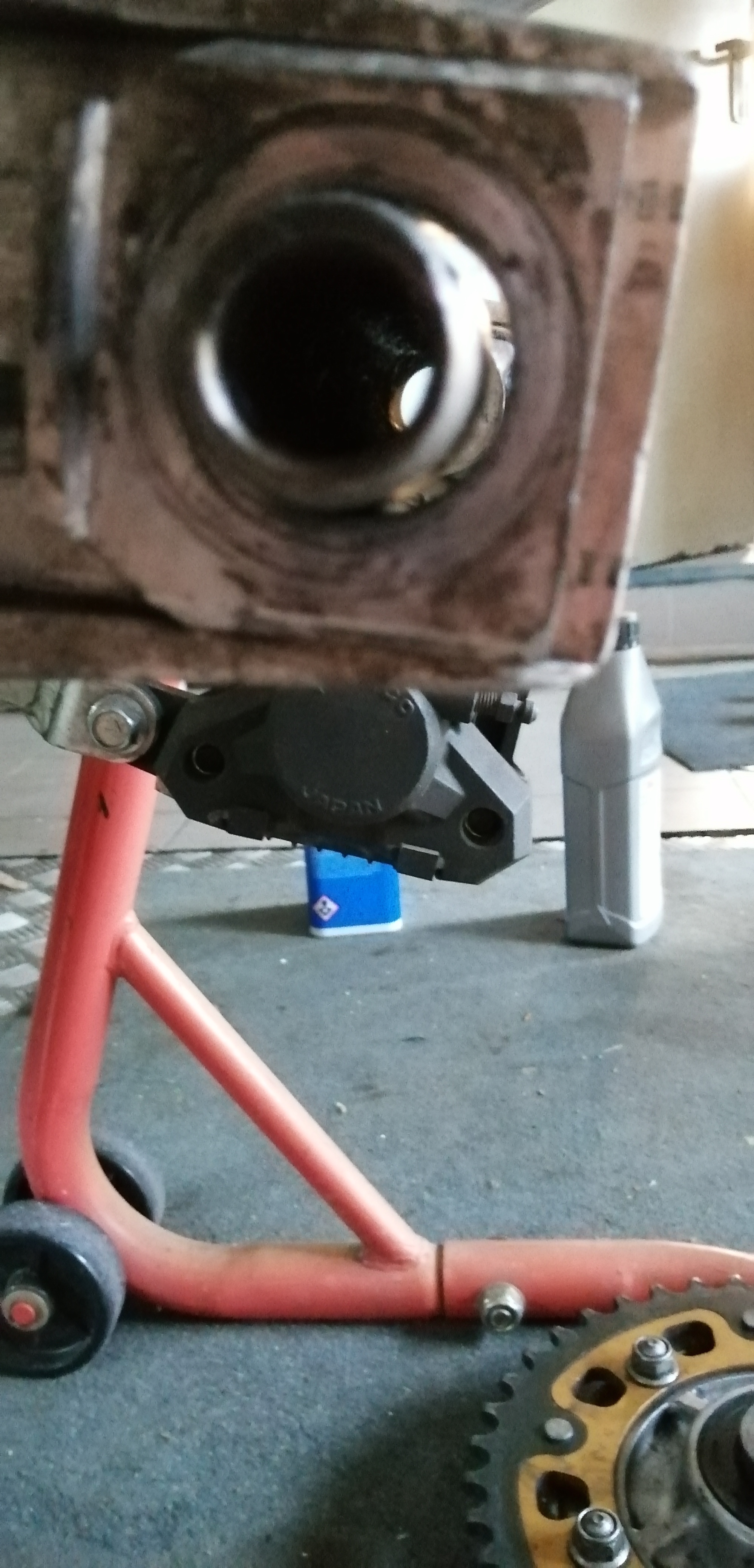 Gestern den Hinterreifen ausgebaut, was mir garnicht gefällt ist, das der Kettenspanner ne viel Größere Bohrung hatt als der Ausendurchmesser der Achse in dem Bereich, ich halte es für Sinnvoll dort von außen eine Hülse einzupressen die 2mm in den Kettenspanner reinragt, nicht aber die Volle dicke von diesem.