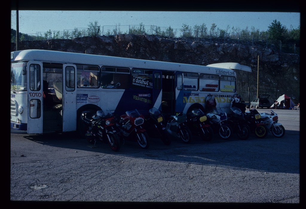 Dann haben wir einen alten Linienbus zum Renntransporter umgebaut. Auf den Strecken war es noch leger,