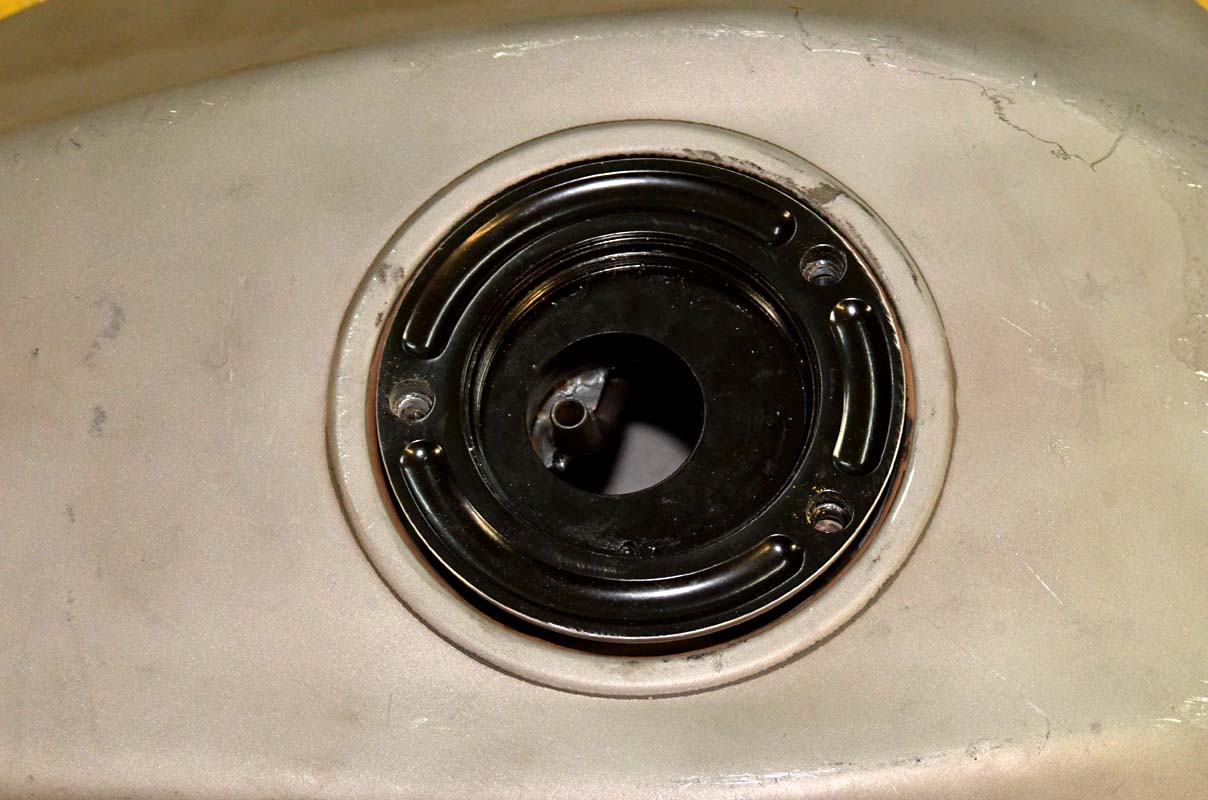 Links sieht man noch den Verschlußdeckel incl. Ventil für den Zugang der Benzinpumpe.
