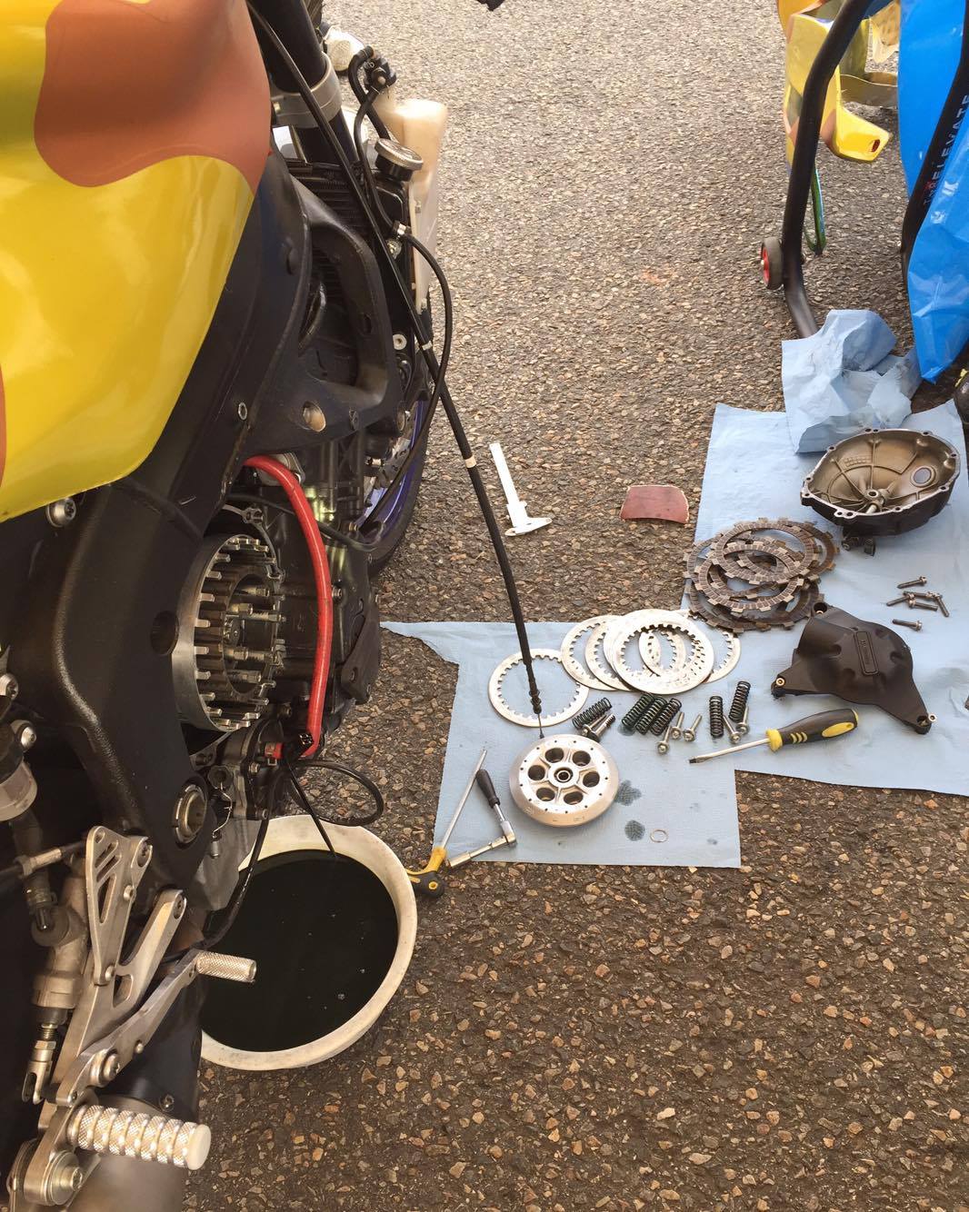 Riesen Wetter, tolle Veranstaltung. WIe immer auf einer nahezu neuen Strecke war es fürchterlich. Die Linie schien das A und O zu sein. Basti zeigte mir diese und ich versuchte es zu verinnerlichen. Bis zum 4. Turn stand dann eine 37 auf der Uhr. Danach quittierte die Kupplung ihren Dienst... Alle umliegenden Händler hatten keine Kupplung da !!!! Unfassbar.... Also ab nach Gera, während Lars schnell die Kupplung aus meinem unfertigen Ersatzmotor baute. Dort angekommen zeigte sich aber, das diese auch durch war...MIST!!! Aber er hat noch eine neue gefunden...was für ein Glück im Unglück! Also zurück zum SaRi.