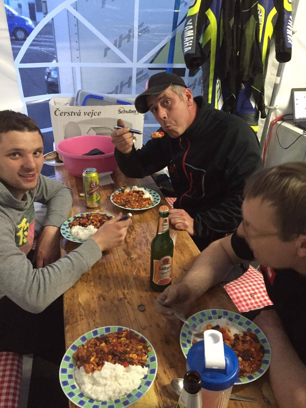 Der erste Test verlief also weniger berauschend. Ich war unzufrieden und mies gelaunt. Der neue Belag ist noch nicht ganz so griffig wie der Rest der Strecke, finde ich. Sehr eben, aber optisch so glatt, sorgten für 1-2 Rutscher beim Rausbeschleunigen auf Start/Ziel. Vergessen habe ich, das ich für unsere kleine Mannschaft chili con Carne gekocht habe :D