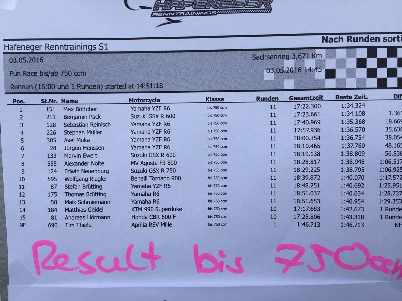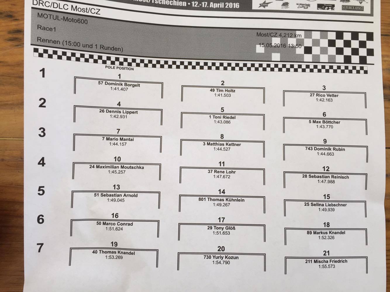 Fangen wir mit dem Negativen an. 2 Qualis sind einfach immer wieder zu wenig Fahrtzeit. Zu Beginn des 2. Qualis war auf einmal der Kupplungshebel fest. Ich büßte die Hälfte an Zeit ein und brauchte 2 Runden um die Reifen wieder warm zu fahren. Eine ganz lustige Story die ich noch nirgends anders veröffentlich habe: