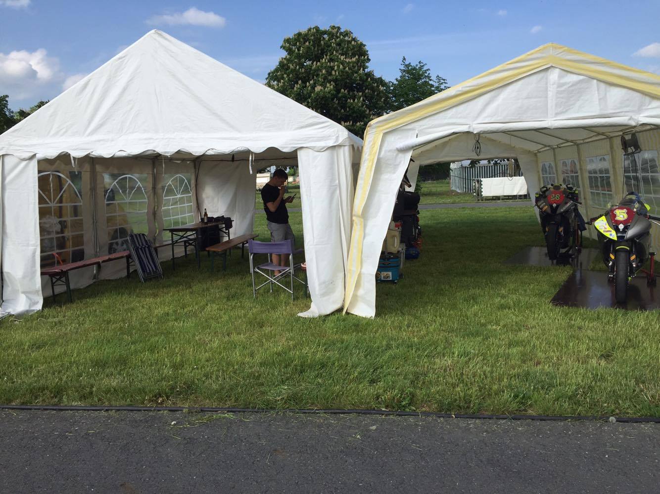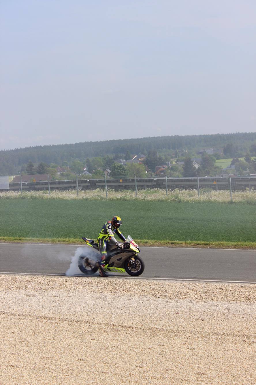 Quali 1 verlief ganz gut aber der Schaltautomat setzt wieder aus, das ist einfach nur behindert. Ich muss mich mehrfach nach unten richten und am Kabel wackeln. Trotzdem war der abstand zur DRC Spitze nicht so groß. Macht auf jeden Fall super viel Spaß :) Wir haben schon die ersten Gäste da und unser Zeltgast und R6 Cup Pilot Ele ist nach langer Anfahrt auch am Start!:) 16:07 Uhr geht ins Quali 2 :)