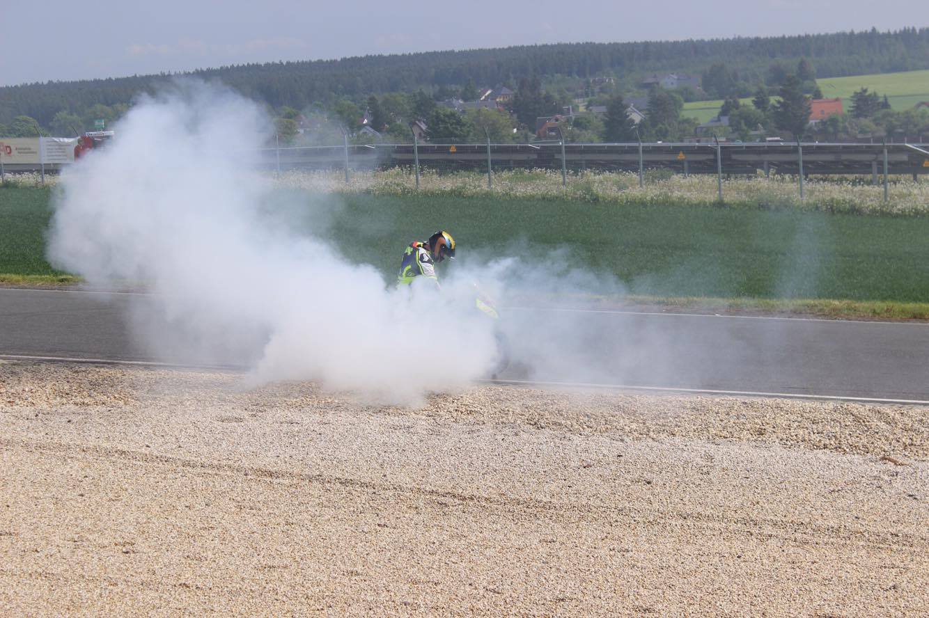 Das warm up verlief bis auf beschlagene Visiere sehr gut und ich konnte die zweitschnellste Zeit fahren. Wie bereits am ganzen Wochenende, egal ob trocken oder nass, wollte ich den Stand Up Wheelie üben :D Gar nicht so einfach....