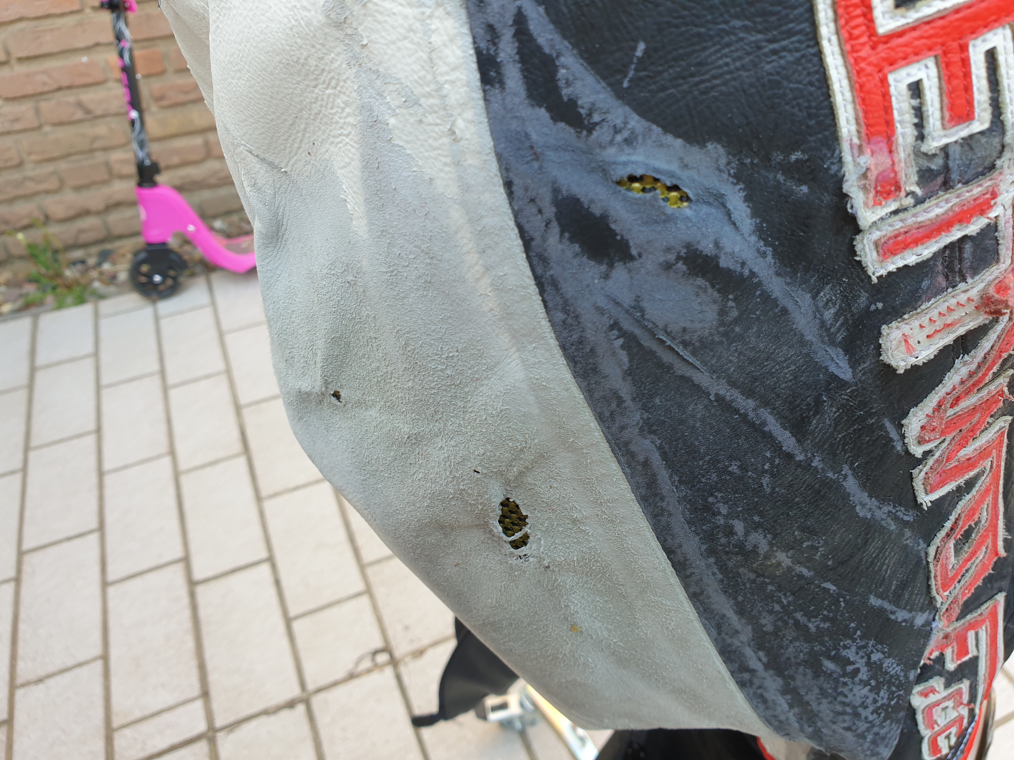 Da kann ich auch mitmachen. Sturz in Rijeka per Highsider. Bestimmt 40-50 Meter über den kroatischen Muschelasphalt gekugelt und bis auf die kaputte Hand und ne kleine Prellung am Fuß nix gehabt (nichtmal nen blauen Fleck oder so). Die Kombi hat 2 kleine Löcher am Hintern, wo das Kevlar durchblickt (Leitwolf baut zwischen die beiden Lederschichten eine Kevlarschicht ein) und ist an ein paar Stellen ganz schön mitgenommen . Sie sieht zwar jetzt echt kacke aus und sollte ersetzt werden aber sie hat mich wirklich gut geschützt. Nach dem Stunt hätte ich schlimmeres erwartet. Die nächste wird wieder ne Leitwolf, mich hats voll überzeugt.