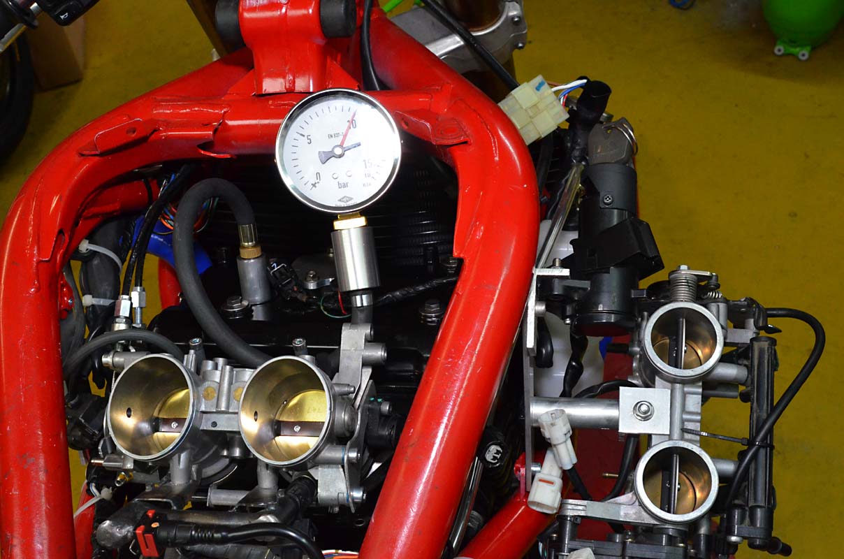 Das sind doch mal hervorragende Neuigkeiten! Sehr schön!ER6-Treiber hat geschrieben:Nachdem jetzt auch der G 1/2 Gewindebohrer da ist, konnte ich mir den Kompressionsprüfer mit dem "guten" Manometer fertig stellen. Das Rückschlagventil sitzt jetzt auch da, wo es hingehört, also ganz vorne im Kerzengewinde. Das Ergebnis der Messung ist erfreulich. Etwas über 12,5 bar auf beiden Zylindern bei kaltem Motor. Von der mechanischen Seite her also erst einmal Entwarnung, scheint alles dicht zu sein.