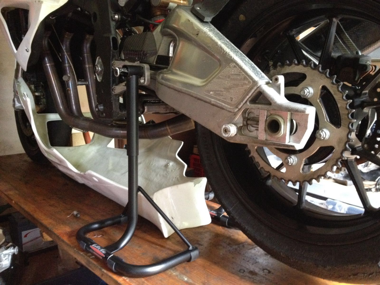 Hab mir noch ein paar Fußrastenständer gegönnt, damit ich die Schwinge wechseln kann.