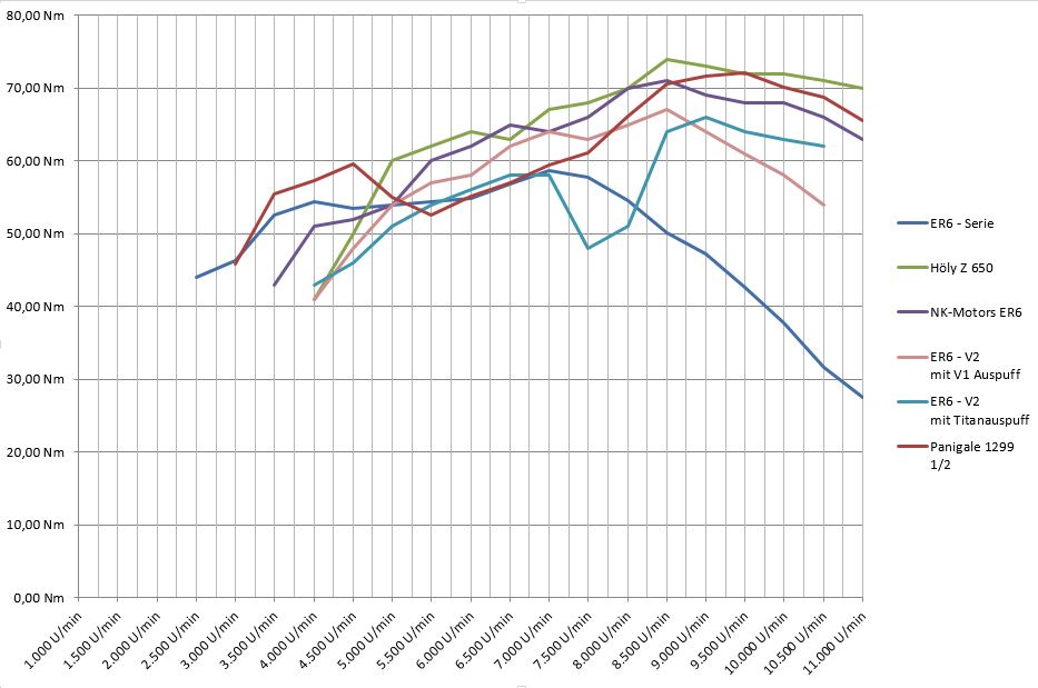 Drehmomentvergleich verschiedener ER6 / Z650 Motoren: