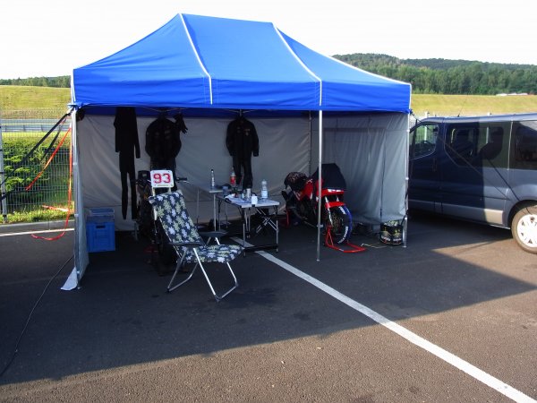 fande das zelt schon zu zweit schwierig aufbaubar. es war außerdem ziemlich hoch und damit zu windanfällig, auch beim abspannen an allen 4 ecken. letztes jahr am slovakiaring mussten wir das zelt bei ähnlichen wetter, wie in diesem jahr...siehe pics, abbauen. am dach konnte man schon nach 2mal aufbau an den nahtlöchern das licht durchblitzen sehen. die dachplane hat sich beim abbau...heißt leichtem zusammenklappen, damit man die plane runternehme konnte in der dachstütze verklemmt --> führt zu schäden an der plane