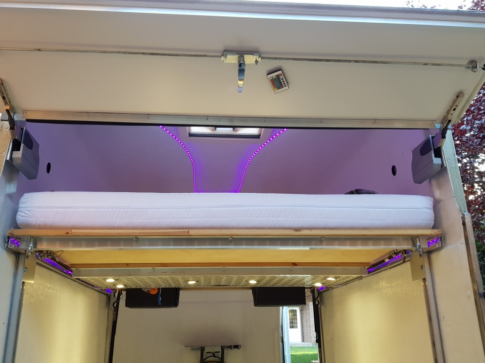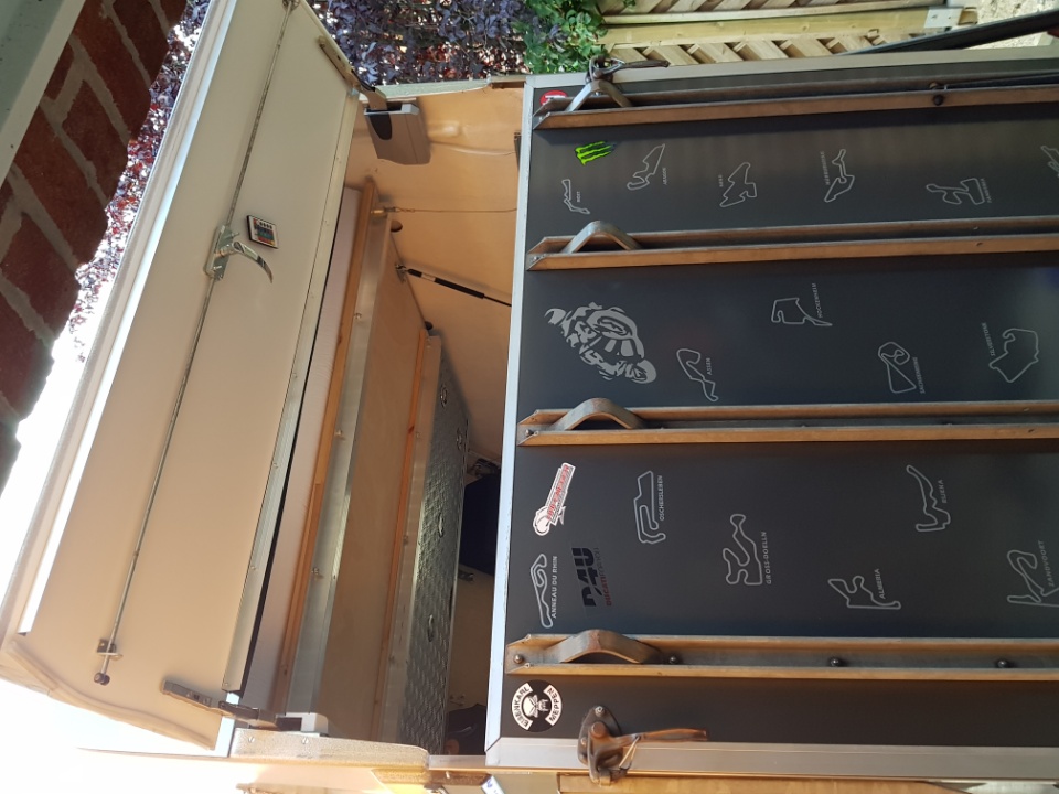 In Zukunft soll darin Platz sein für 2 Motorräder (hinten), darüber ein Hubbett um die Motorräder einfach einladen zu können. Der vordere Bereich ist dann für