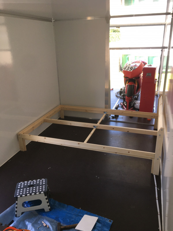 Im Anhänger schlafen geht im Hubbett wenn die Mopeds drin sind schon aber man muss halt mit den Ausdünstungen und kletterten über das geladene leben.