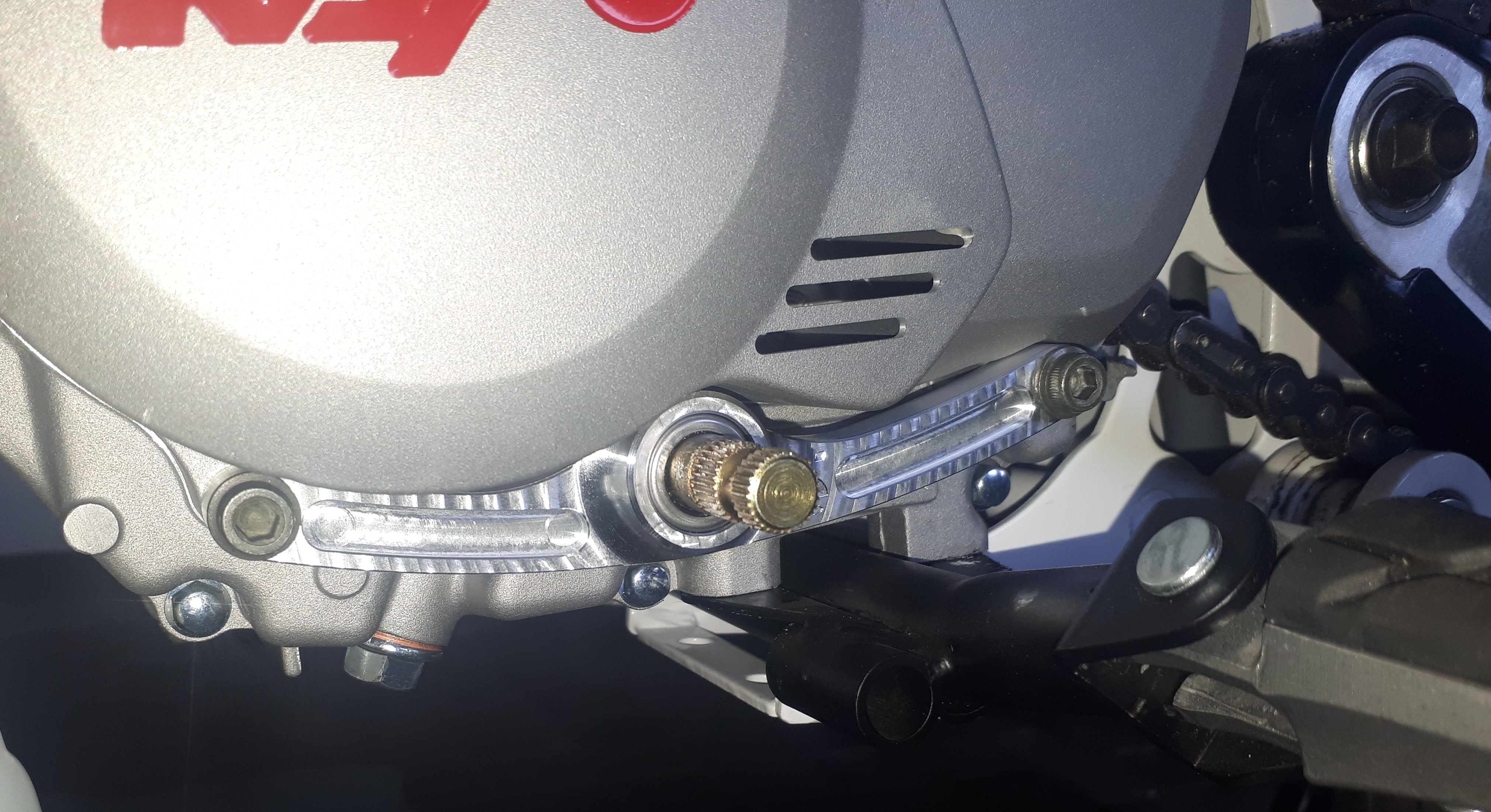 Wird einfach mit den beiden unteren Schrauben des Lima-Deckels befestigt, ist dadurch extrem stabil und trägt die Schaltwelle sehr weit außen wo auch die Belastung liegt. Dadurch schaltet es sich sauberer und die Welle ist im Sturzfall optimal geschützt. Bei der Montage braucht man auch keine dichtenden Schrauben lösen was zu Ölleckagen führen kann. Das Polymerlager ist wartungsfrei, und im Fall der Fälle wird dieses gequetscht bevor die Schaltwelle schaden nimmt.