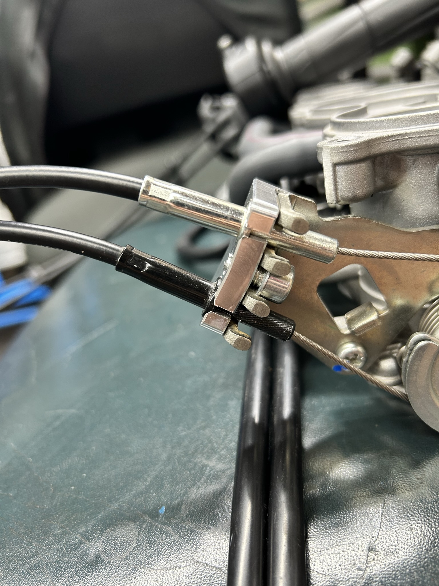 Funktioniert schonmal 1a. Mit der Kawa Gasgriffhülse ist der Gasweg minimal länger als wie mit der R6 Gasgriffhülse, aber deutlich kürzer als Original Suzuki. Zur Not können wir den Gasweg aber noch recht einfach verkürzen, das schaue ich mal wie es mir am Pan geht.
