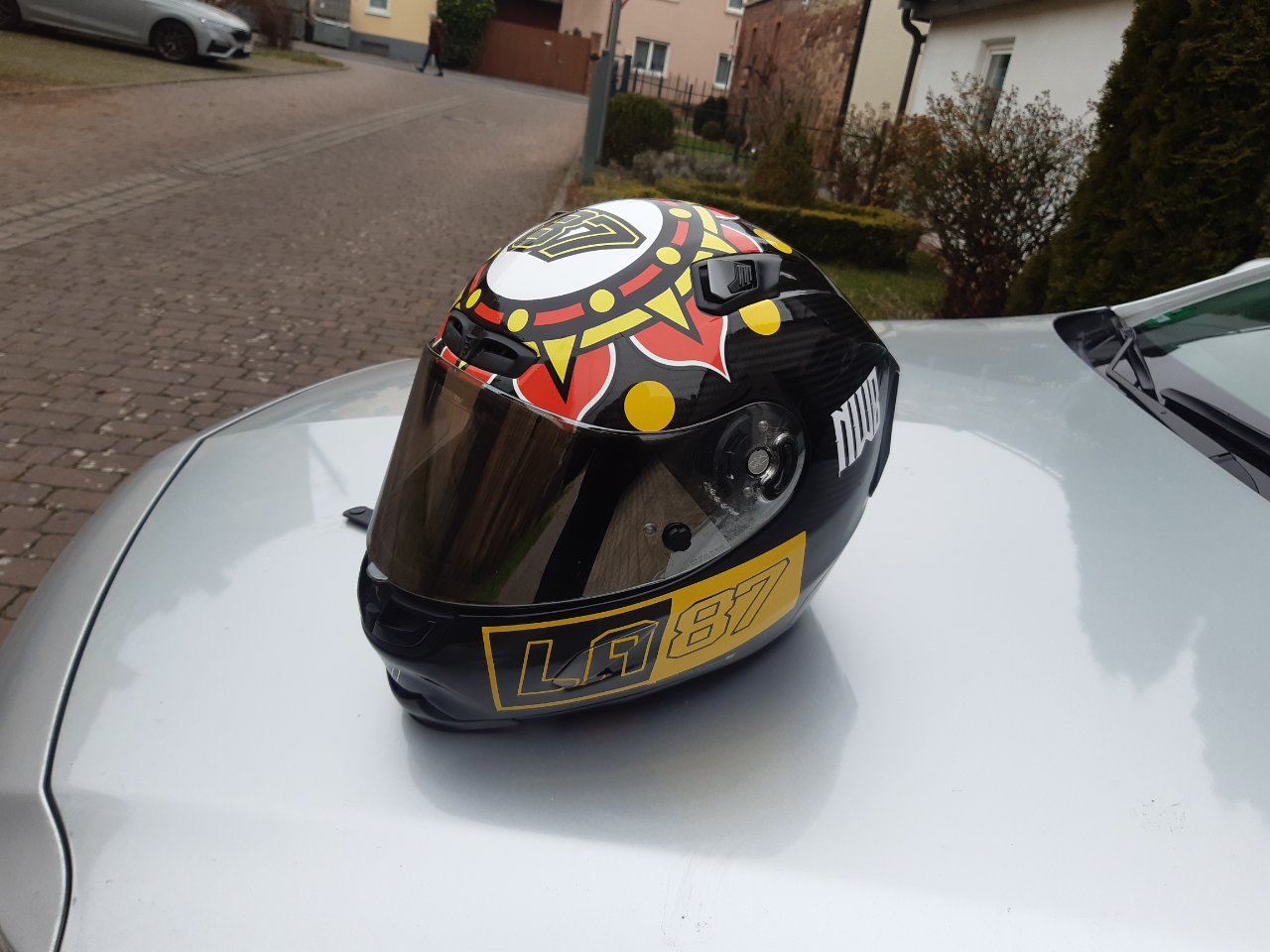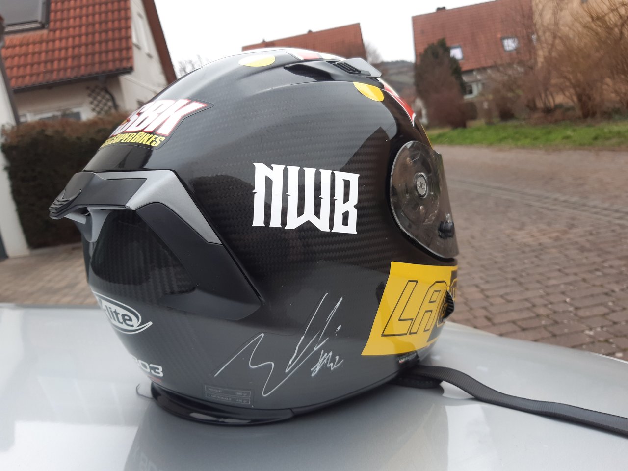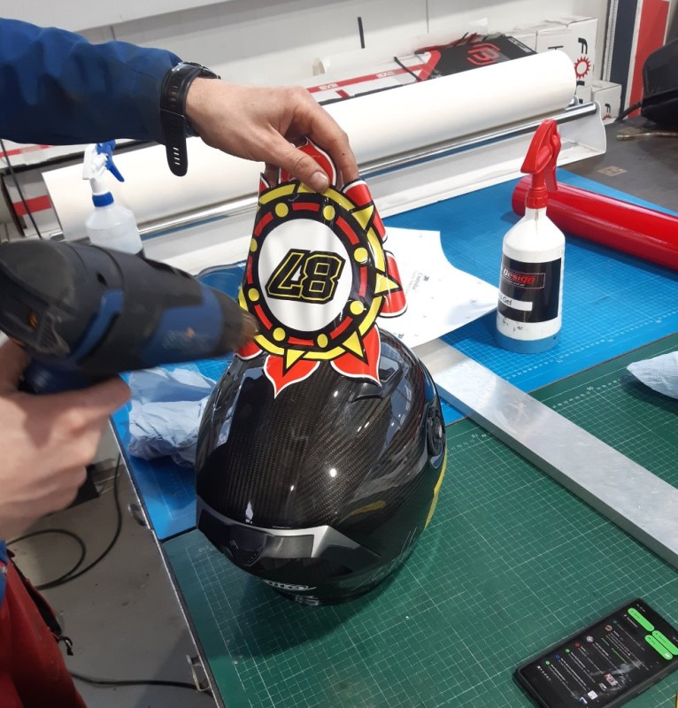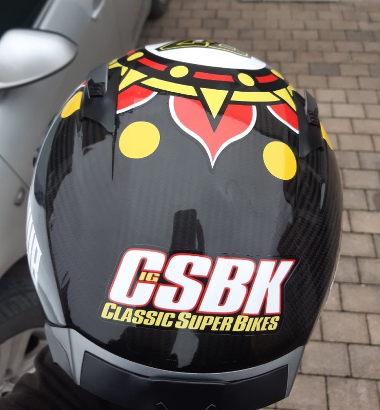 Zusätzlich gab es noch ein brandneues Helmdesign für die kommende Saison. Inspiriert von Chaz Davies aber von mir selbst designed. Die perfekte Umsetzung erfolgte dann durch Franky. Wahnsinn, was der Mann hinbekommt. Ich könnte das nicht…