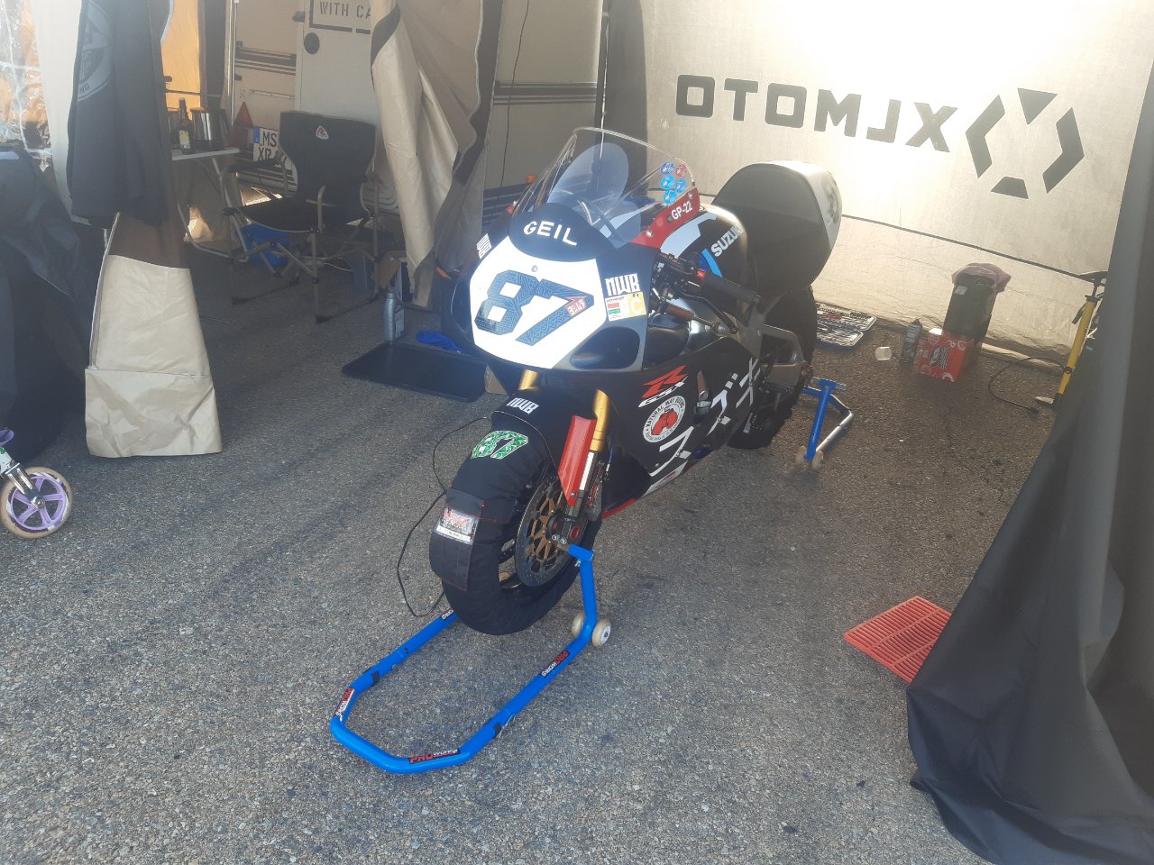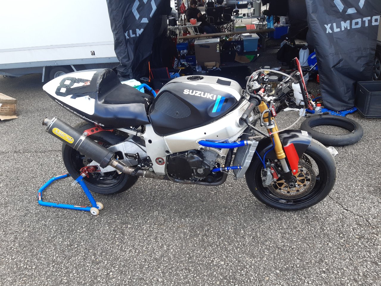 Mit Hilfe vieler CSBK Kollegen konnte ich das Q2 und den Startversuch des Rennen 1 mitfahren. Nach dessen Abbruch nach 5 Stürzen setzte ich einen Haken hinter das Wochenende und packte zusammen.