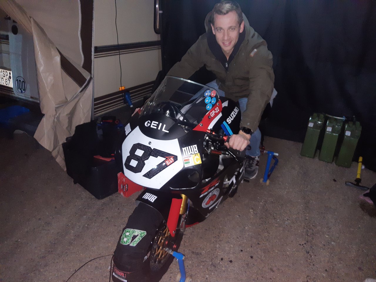 Zum Abschluss des Cartagena Themas noch etwas positives. Abgesehen von der tollen und unterstützenden Gesellschaft der anderen CSBKler und der köstlichen Verpflegung hatte ich die Möglichkeit den SERT Stammfahrer Gregg Black kennenzulernen. Was für ein netter Kerl! Abends haben wir uns dann bei einem Bier mein Motorrad angeschaut und er war voll des Lobes für meine Ideen. Das von einem mehrfachen Langstreckenweltmeister zu hören war wirklich unglaublich für mich und ein Lohn für die unzähligen Arbeitsstunden, die jetzt in meinem Bike stecken.