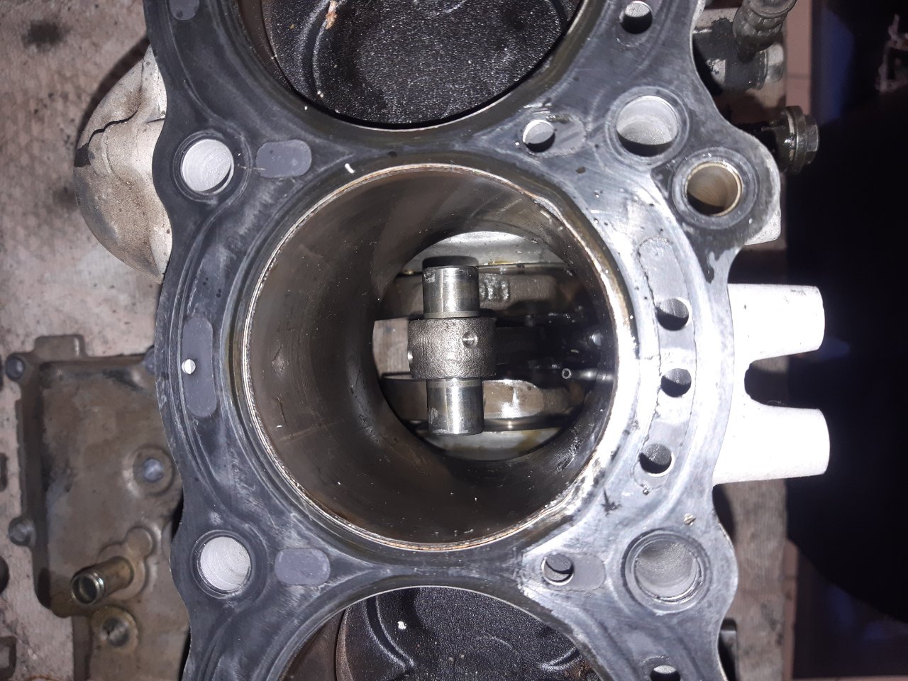 Der Kolben in Zylinder 2 war komplett zersprengt. Interessanter Weise fehlten aber fast sämtliche Splitter. Die hatte vorher schon jemand herausgesammelt…