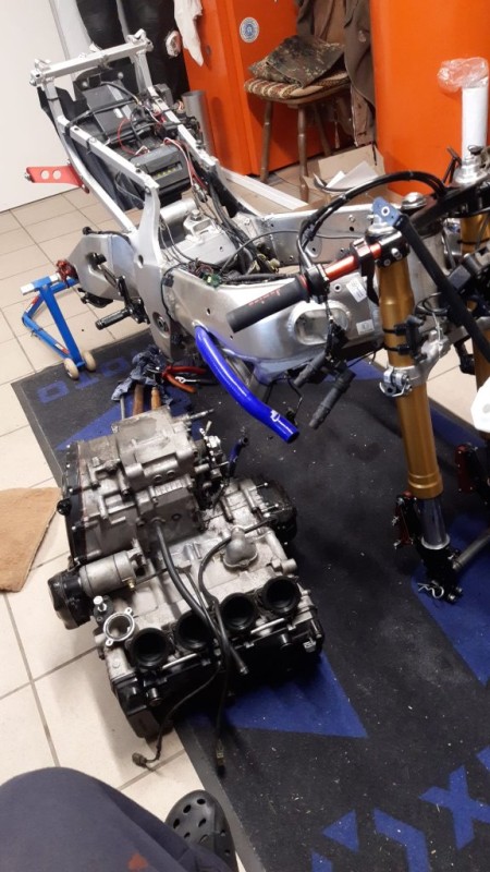 Am Osterwochenende war mein fester Plan, den Motor wieder zusammenzusetzen und einzubauen. Keine anderen Termine, perfekte Voraussetzungen! Zusätzlich noch das 24 Stunden Rennen in LeMans? Ein Traum! Leider konnte ich erst pünktlich zum Rennen um 15:00 Uhr am Samstag den 16.04.2022 loslegen. Alles lief gut und irgendwann packte mich dann der Ehrgeiz. Wenn die EWC Jungs die ganze Karre in kürzester Zeit zerlegen und wieder zusammensetzen können, sollte ich es doch innerhalb von 24 Stunden schaffen, das Motorrad fertig zu bauen!!!