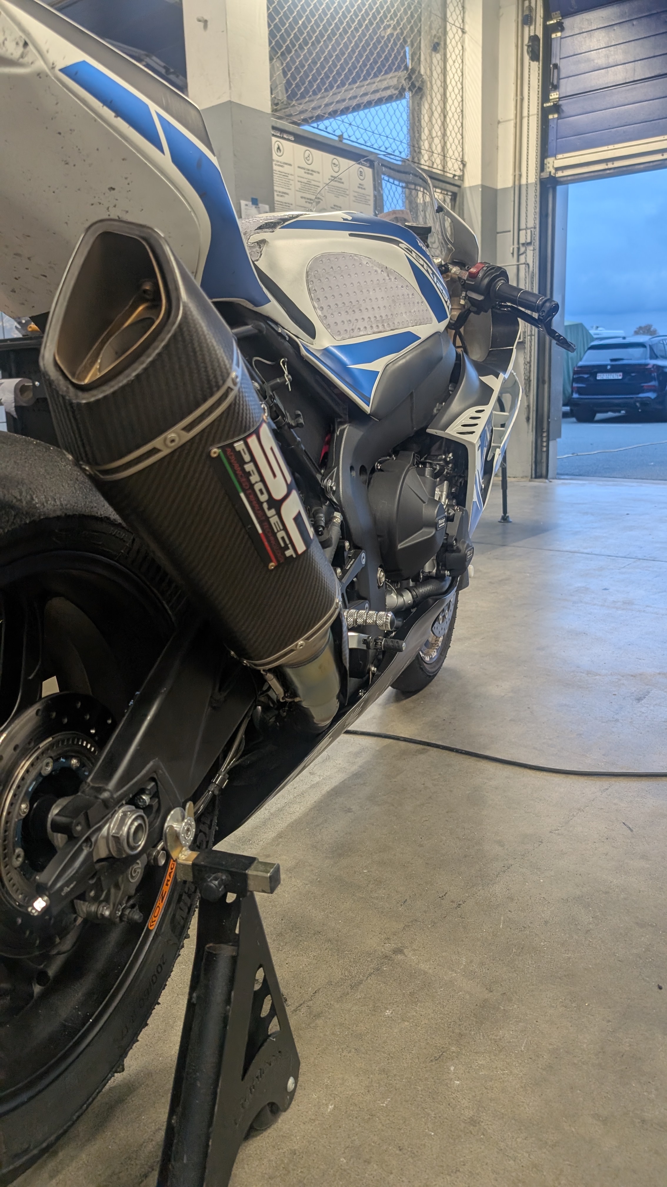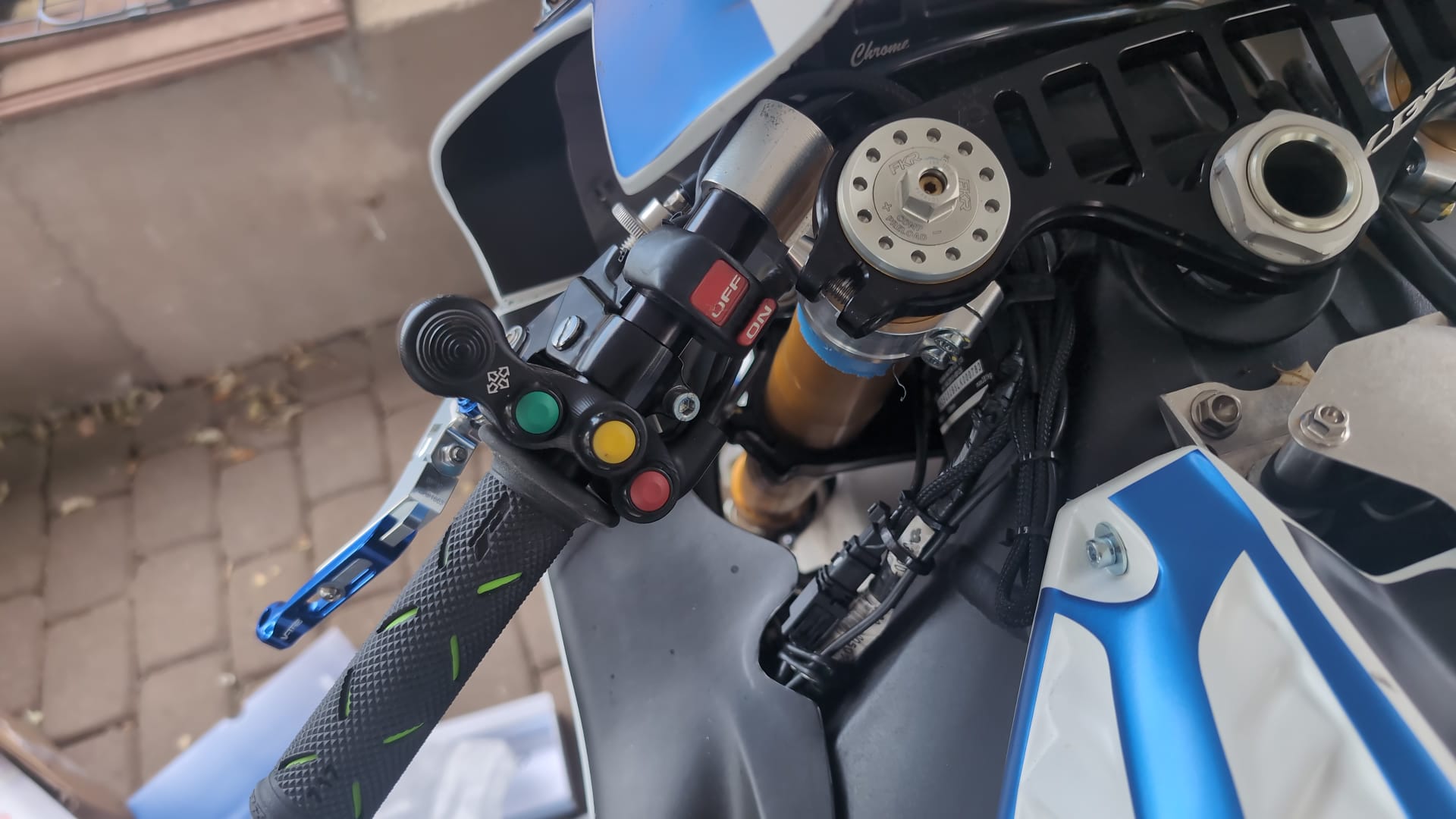 Nach dem kleinen Malheur beim DLC in Hockenheim (wer will, kann sich das Reel auf meinem Insta-Account ansehen), stand ein wenig Reparatur bei der Fireblade an. Um die Lenkerstummel samt Schelle zu tauschen, muss zu meinem Unwissen die Gabelbrücke runter – doof nur, dass mein Aufsatz-Sortiment bei Größe 36 endet. Also wurde kurzerhand nur der Stummel gewechselt. Wie man sieht mit nem Griffgummi von der Kawa den ich noch rumliegen hatte. Nicht schön, aber selten. Den kompletten Gilles-Satz gibt’s dann eben erst im Winter. Vielleicht sogar besser so – diese Saison war nicht viel mit Sitzenbleiben. Ich greif mal vor: Es gab wohl nur eine Veranstaltung bei der es mich dieses Jahr nicht auf die Nase gelegt hat.