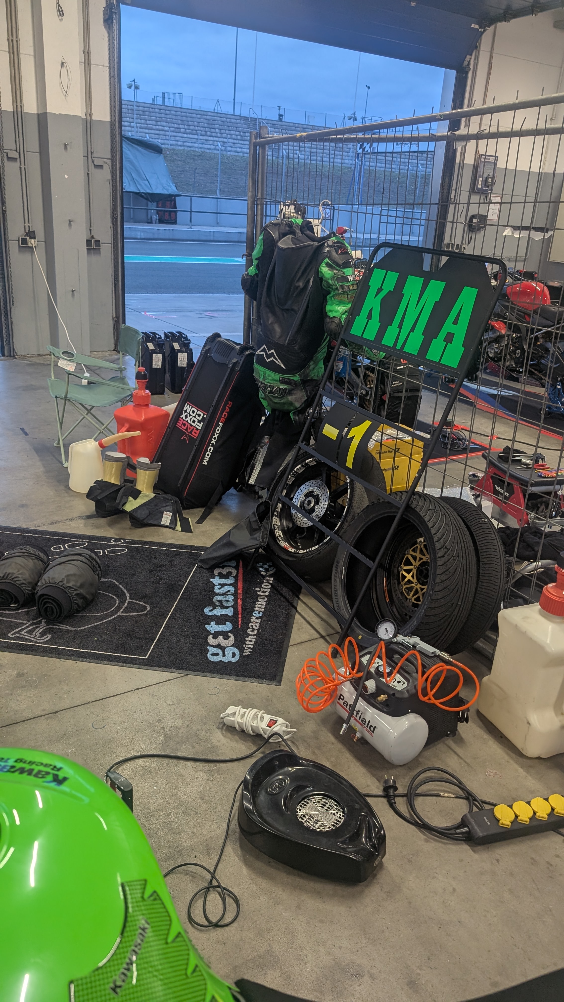 Die Anfahrt war wie immer… sagen wir speziell. Mental häng ich da jedes Mal, weil man für die letzten 80 Kilometer fast genauso lange braucht wie für den halben Weg davor. Wer schon mal über die A71 reingefahren ist, weiß, was ich meine. Dafür war diesmal die ganze Boxencrew am Start, was wiederum eins garantierte: Langeweile kommt garantiert nicht auf. Wer lernen will, wie man mental in Sekundenschnelle den Fokus wechselt, sollte so eine Mini-Crew beschäftigen. Eben noch Schrauber im schnellsten Rennteam der Welt, und bis zur Boxenausfahrt musst du in den Tunnel als Fahrer umschalten. Das hält den Kopf auf Trab.