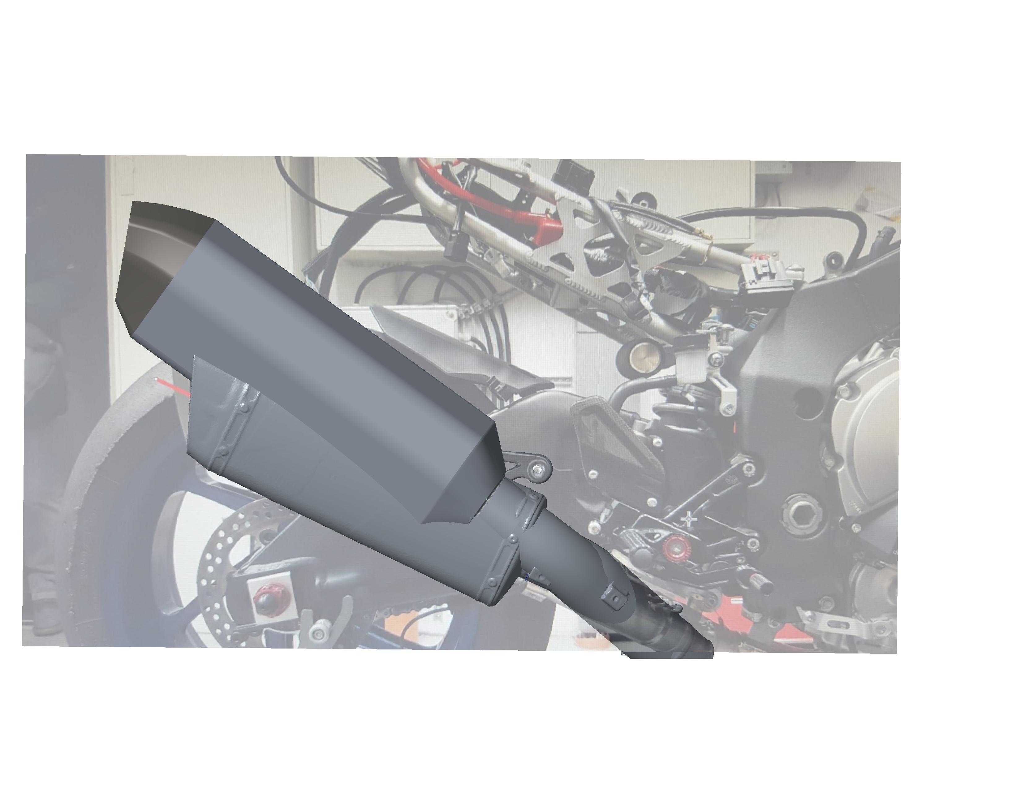 Zwei Punkt gibt es noch zu beachten an denen das Projekt scheitern könnte. Zum einen ist der BMW-ESD breiter als der R1-Topf. Muss deshalb etwas weiter weg von der Hinterradschwinge positioniert werden.