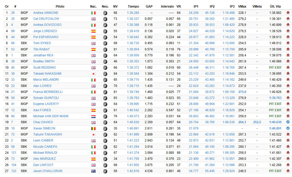 Insgesamt sind die Spitzenzeiten in etwa gleich wie im jeweiligen Qualifying am Rennwochenende. Sowohl bei SBK als auch MotoGP.