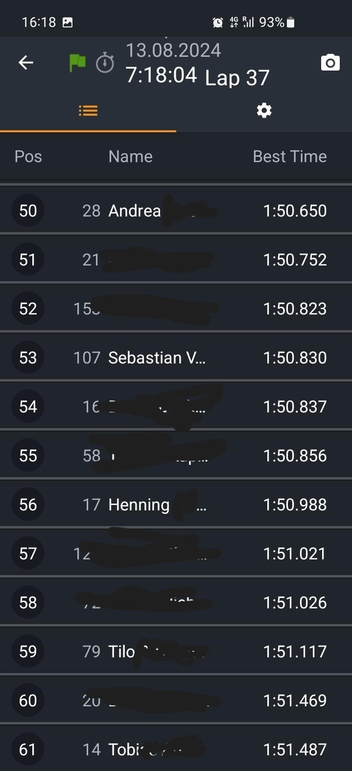 Und so fuhren wir auch an diesem Vormittag alle weitestgehend wie geplant zusammen in einer Gruppe. Bis auf die Momente, wo ich mal wieder das Timing verpasste und noch lange nicht den Helm aufgesetzt hatte, wo der Vusi schon fordernd vor meinen Standplatz gerollert war und mich ansah. Stress kam mir nicht in die Tüte und so verzichtete ich auf die Fortsetzung von Du-ziehst-mich-auf-die-1:50-und-ich-dich-dann-darunter. Erstaunlicherweise ging Vusis plan auf, denn schon gestern hatte ich mich verglichen zum Vortermin um die eine Sekunde verbessert. Wir profitierten beide von der unterschiedlichen Motorcharakteristik und den Bremsambitionen. Wo er wegzog, versuchte ich, dranzubleiben und wo er rumschneckte, wusste ich, wie man schneller vorwärts kam. Das konfliktstangenfreie Fahren machte richtig Spaß.