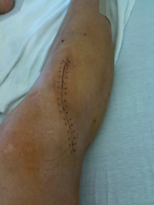 Die Wunde konnte nicht sofort verschlossen werden da der Muskel zu sehr zerquetscht und das Bein noch zu Stark angeschwollen war, das hätte die Haut nicht gehalten. So ein Motorrad hat halt schon ganz schön rums. Evtl sollt ich mich mal lieber in WenigerPower umbenennen damit sowas auch mal anders ausgeht.