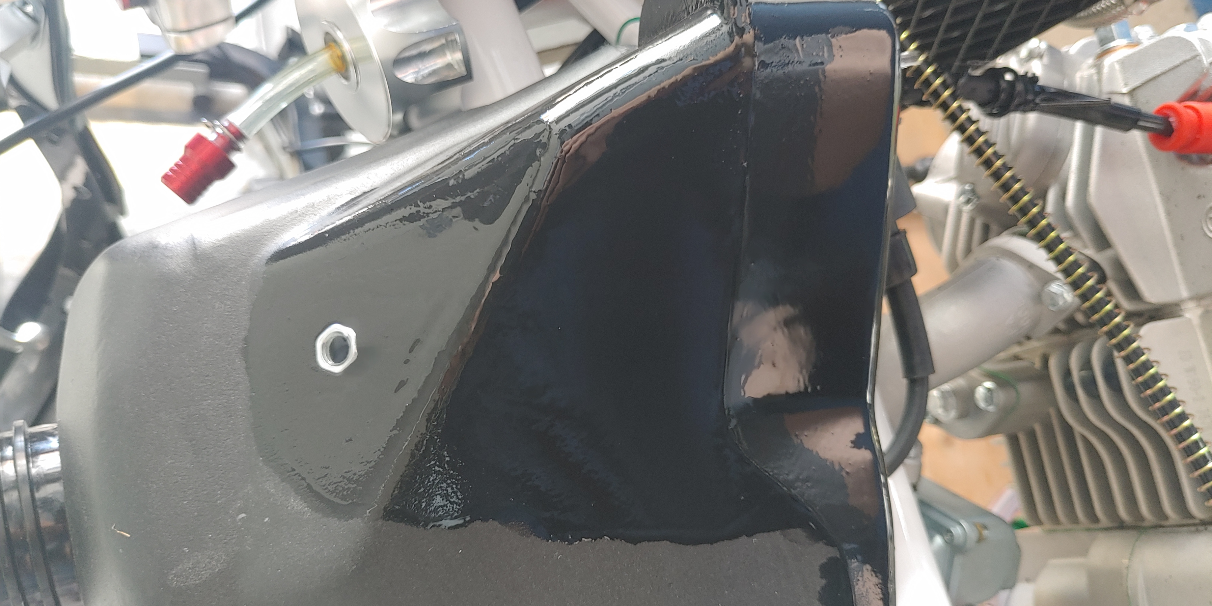 Das Problem mit dem Tank habe ich vorerst gelöst, indem ich auf jeder Seite einen Gewindestift eingeklebt habe (natürlich vor der Veranstaltung). Diese dichten das kleine Loch ab und können bei Demontage der Verkleidung einfach an Ort und Stelle bleiben. Sollte es doch undicht werden, habe ich noch die oben genannten Reperaturkerzen besorgt. Für den Fall gibt es dann auch gleich geschlossene Gewindeeinsätze.