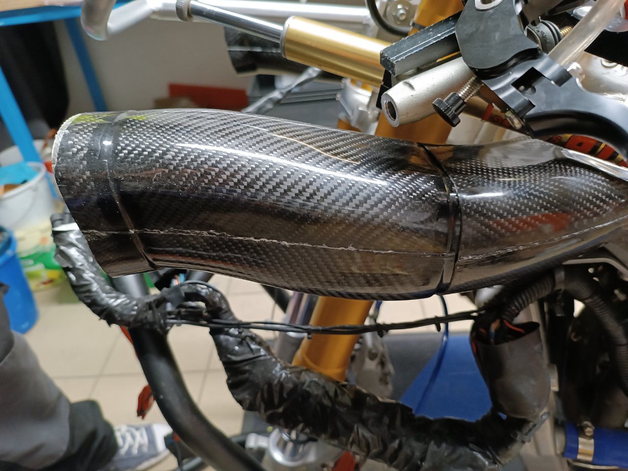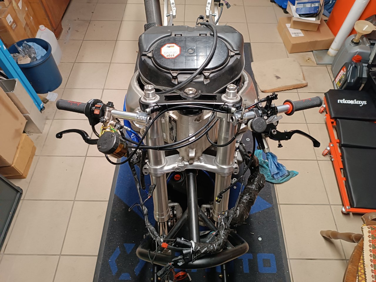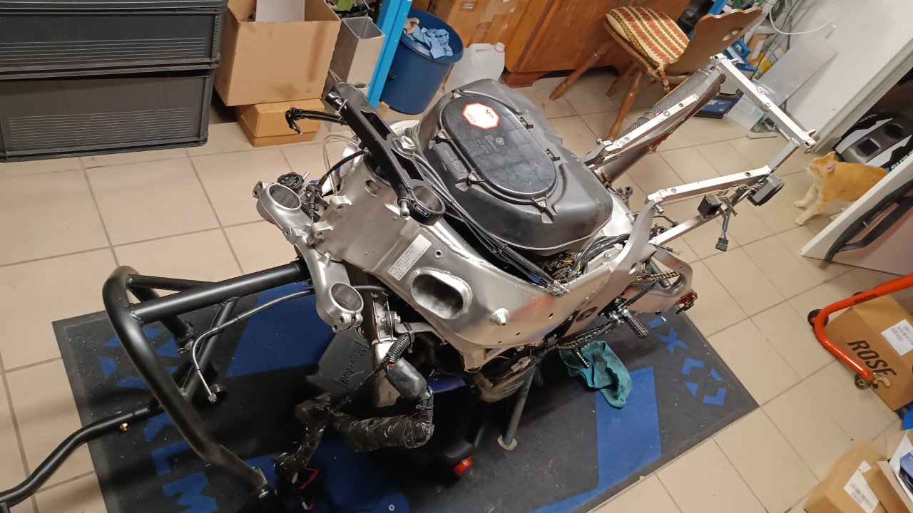 Da sich das Fahrergewicht seit der Saison 2021 um 28 Kilo reduziert hat, wird das Fahrwerk denke ich neue Federn brauchen. Falls an der Gabel mit moderatem Aufwand etwas verbessert werden kann, lasse ich das auch machen. Dazu halte ich noch Rücksprache mit Pepe.