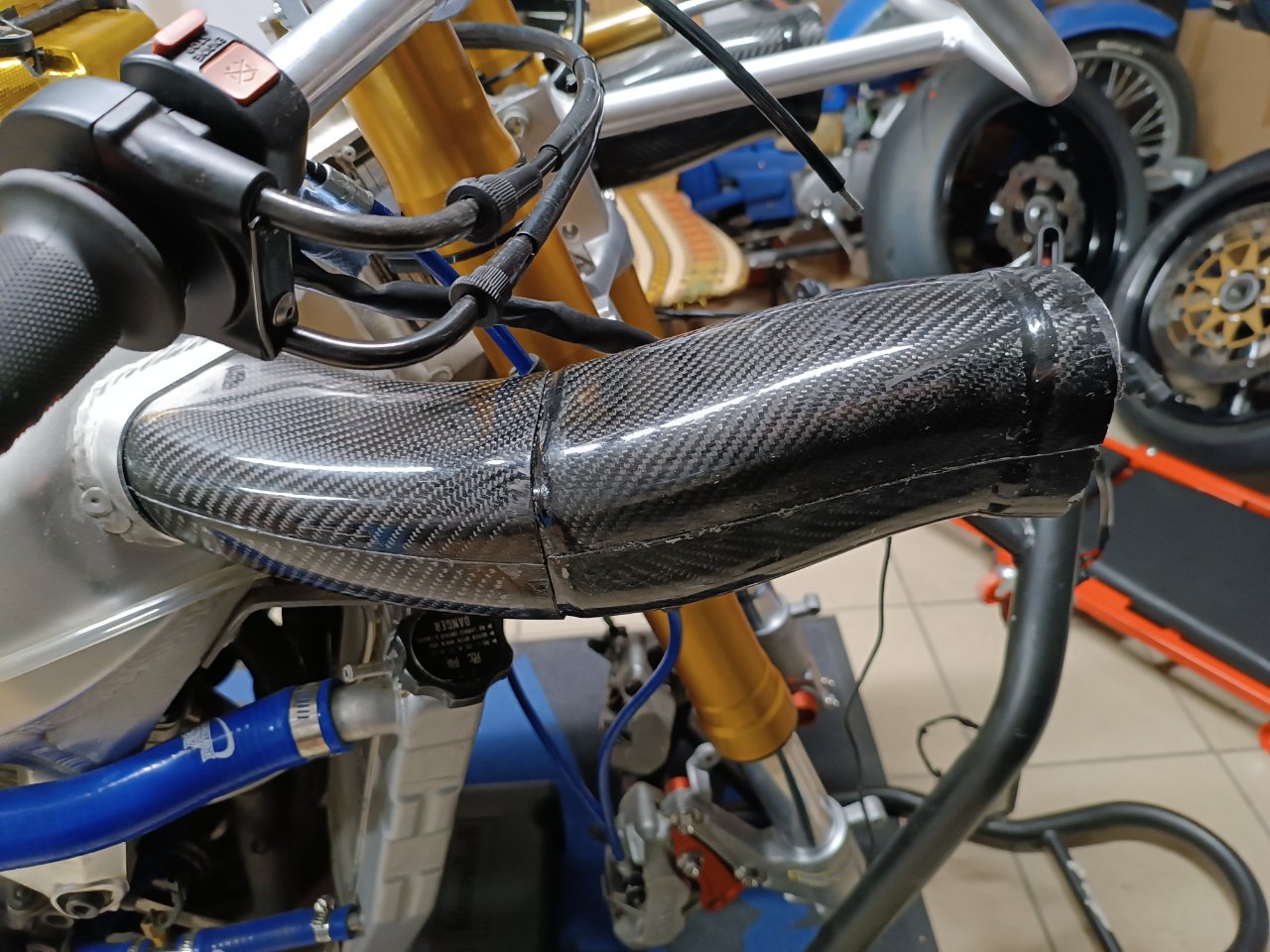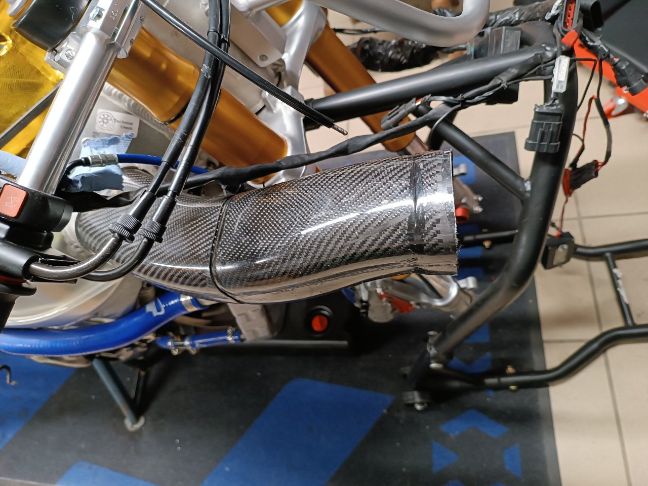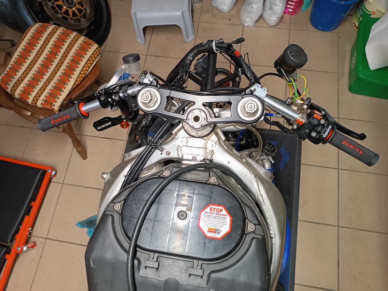 Da sich das Fahrergewicht seit der Saison 2021 um 28 Kilo reduziert hat, wird das Fahrwerk denke ich neue Federn brauchen. Falls an der Gabel mit moderatem Aufwand etwas verbessert werden kann, lasse ich das auch machen. Dazu halte ich noch Rücksprache mit Pepe.